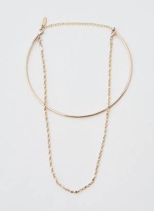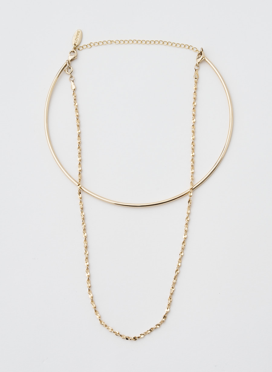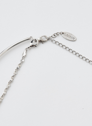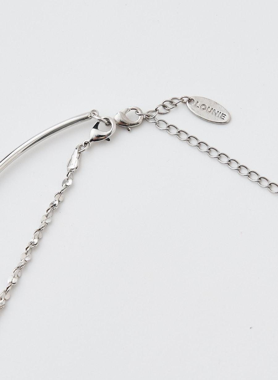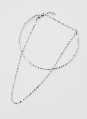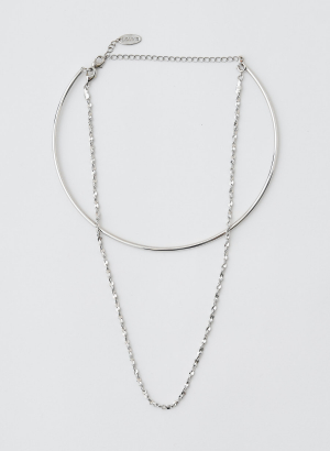 パイプパーツを使用したメタルチョーカーと、デザインチェーンのネックレスを組み合わせました。