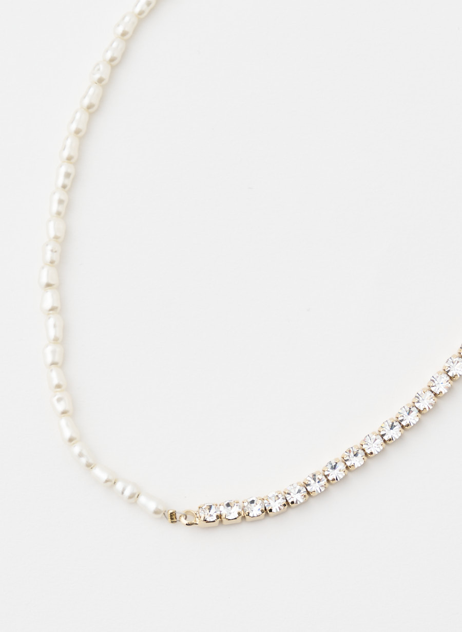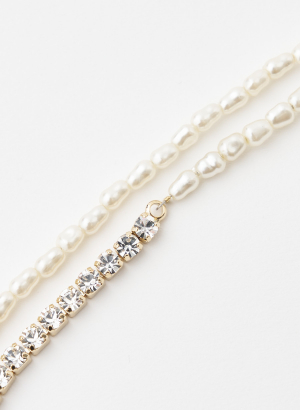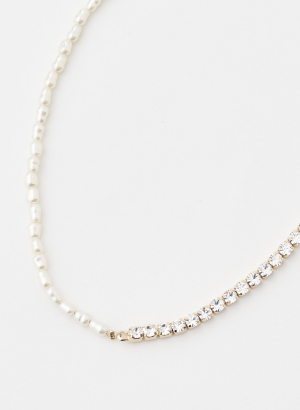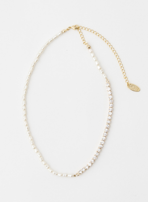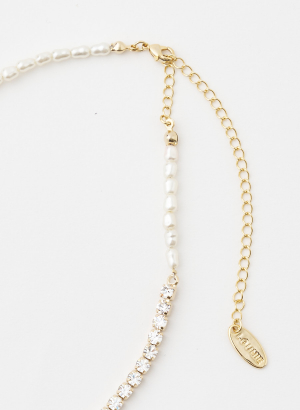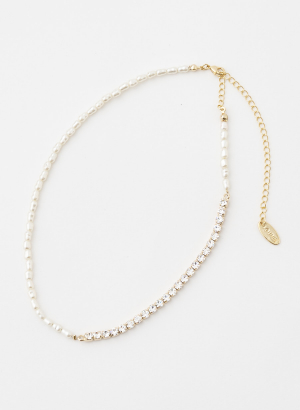淡水風の変形パールとダイヤレーンを組み合わせたショートネックレス。