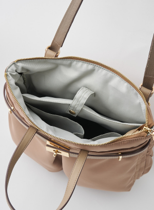 ハンドルを使用した手持ちスタイルに、リュック持ち、さらにリュック用の紐を引き上げて伸ばすことで、斜め掛けのショルダータイプとしても使える機能バッグとして企画しました。