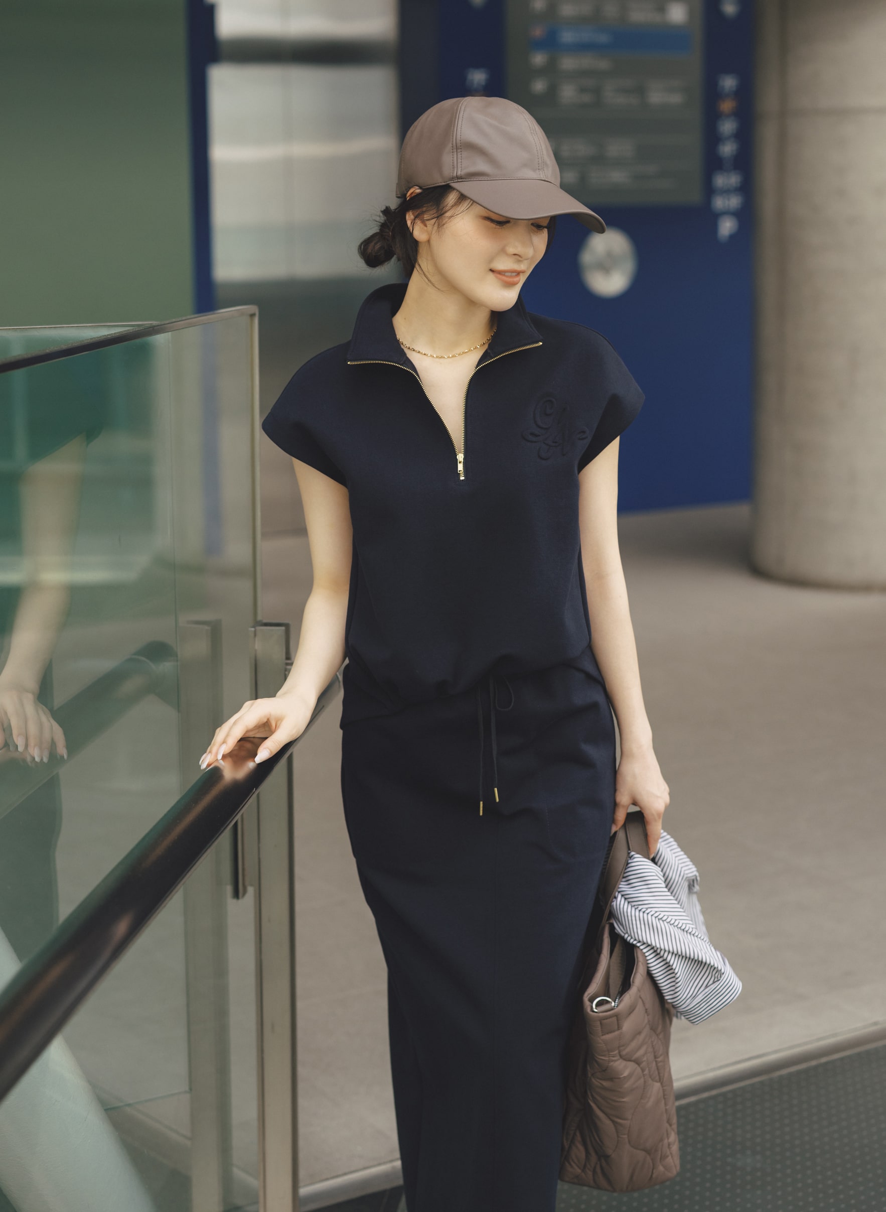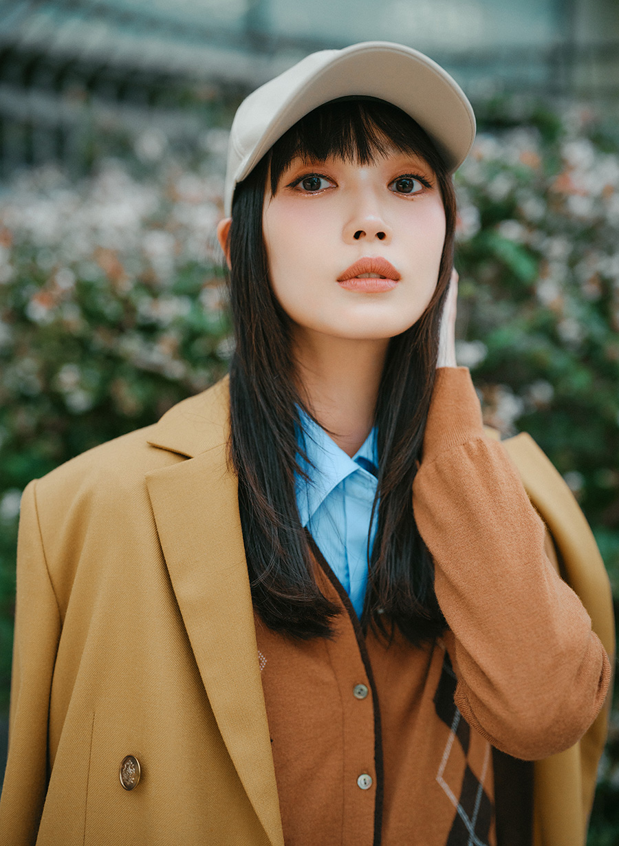 【着用感】しっかりとした素材ですが重さは感じません。深さも程良く、長めのつばで小顔効果◎