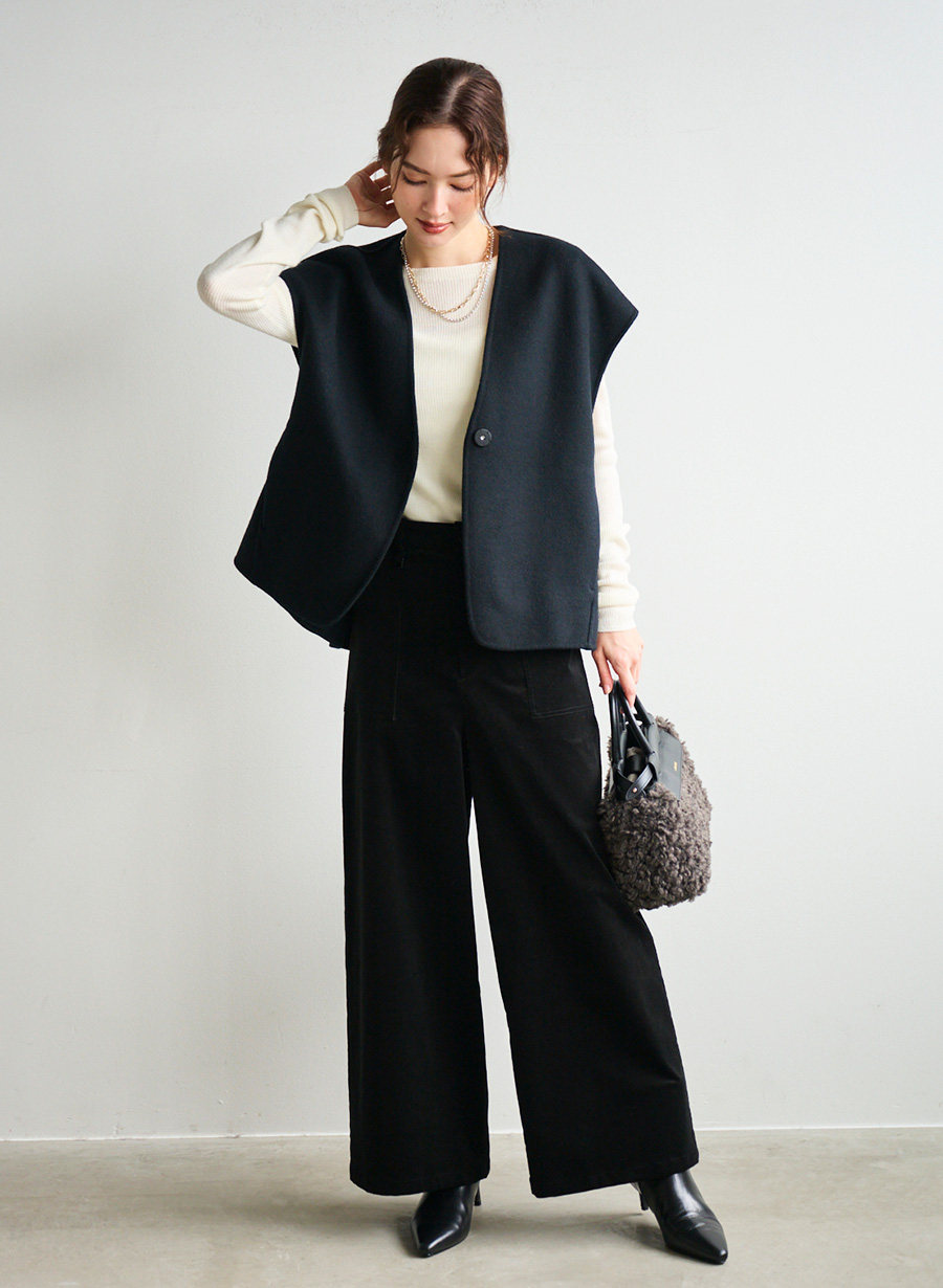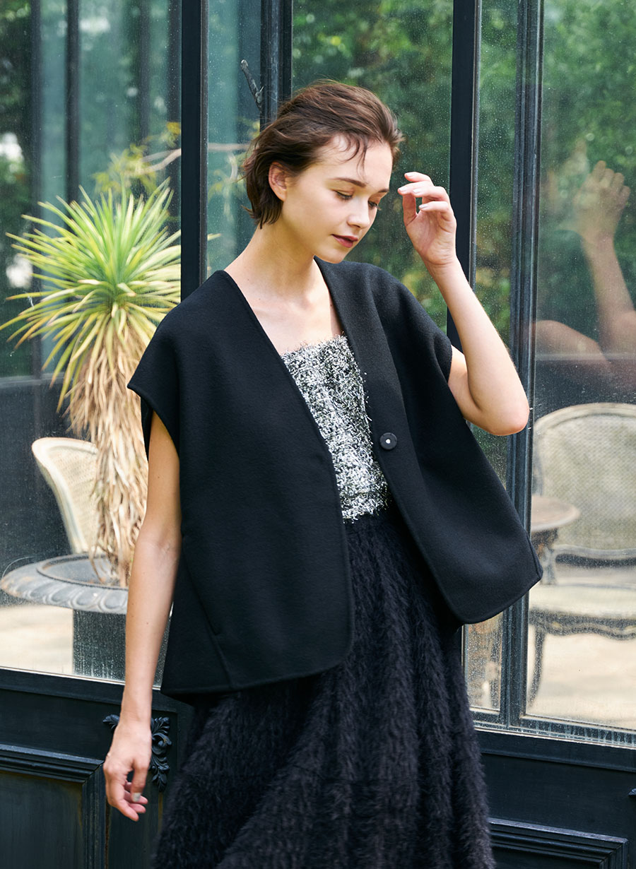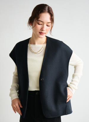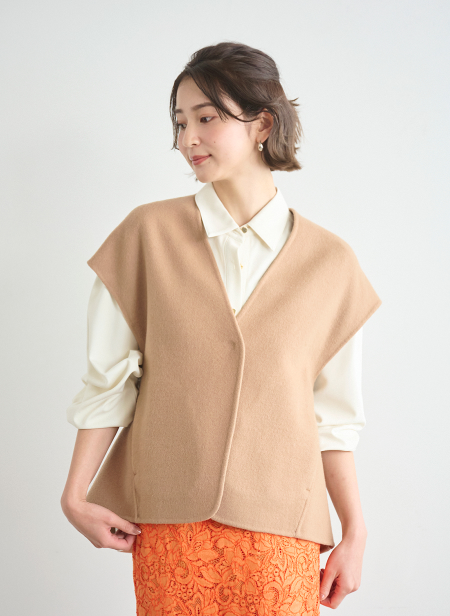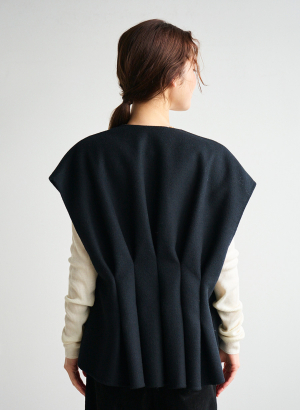 ・後ろのタックデザインが印象的なショートジレ。