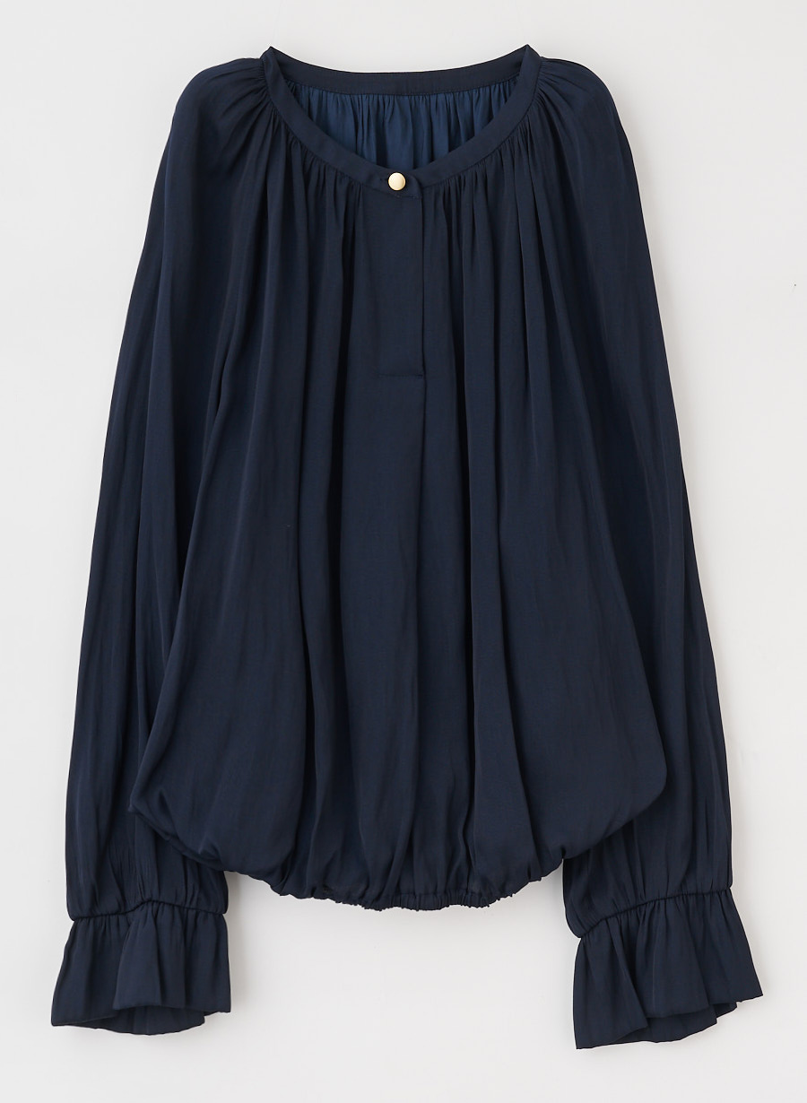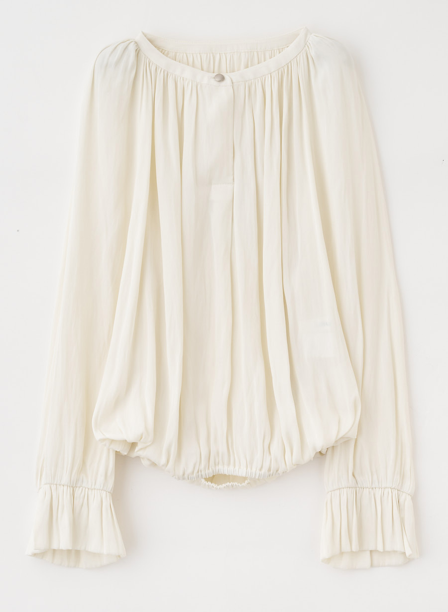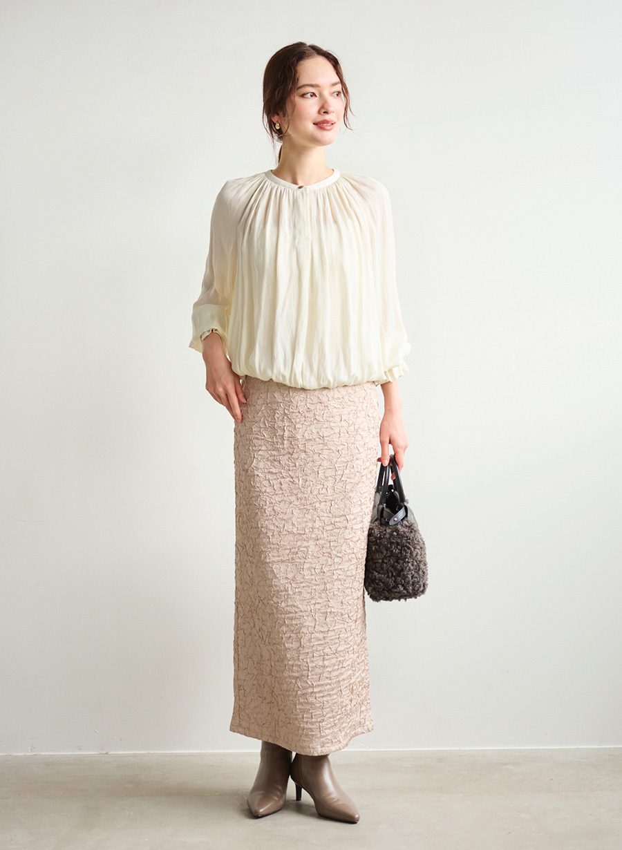 ・裾のバルーンのシルエットが、ほんのりニュアンスのあるドレープ感を演出。