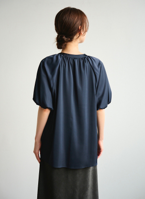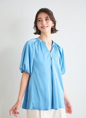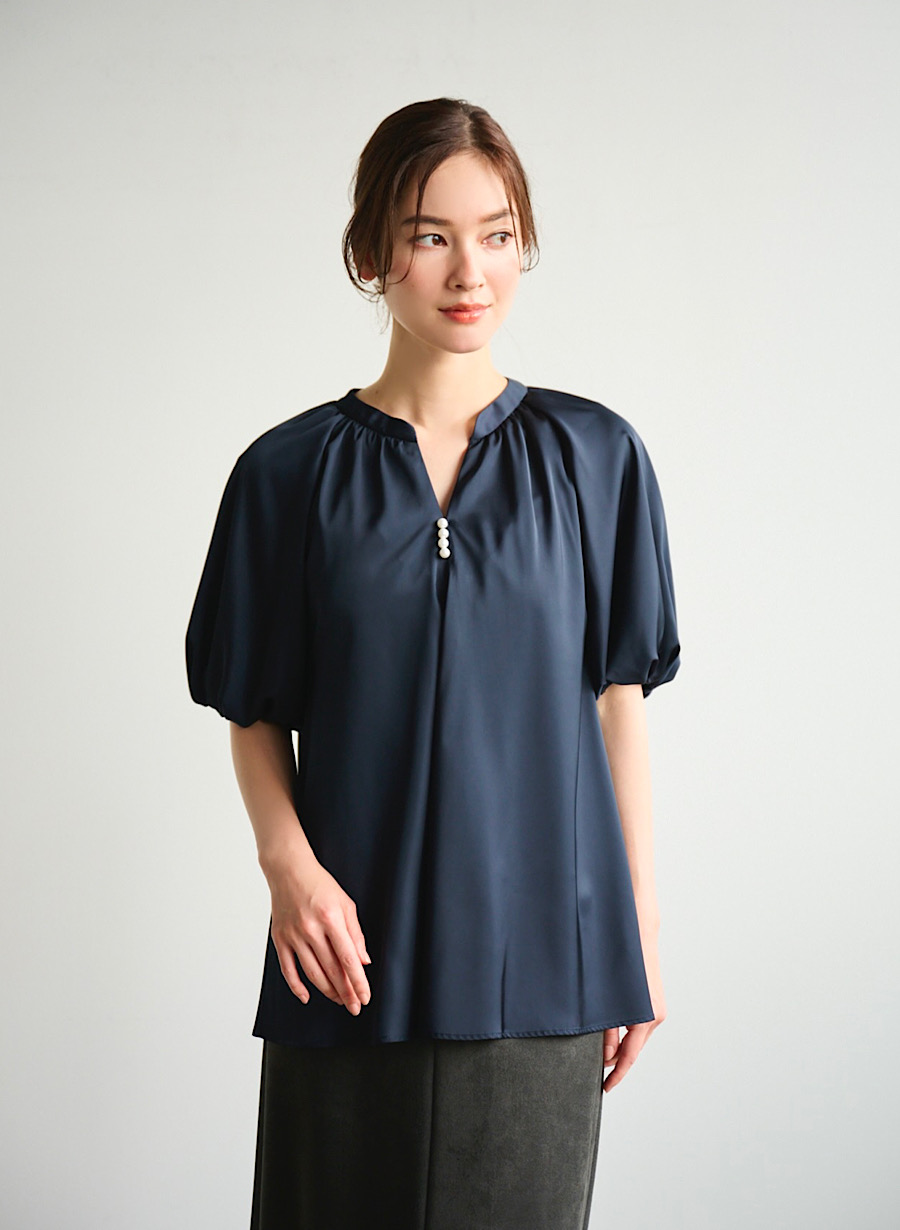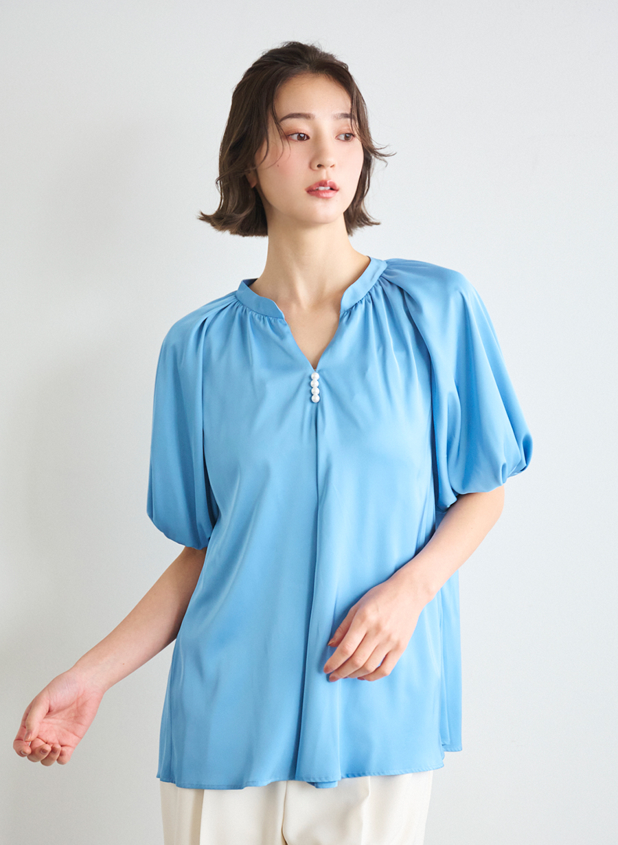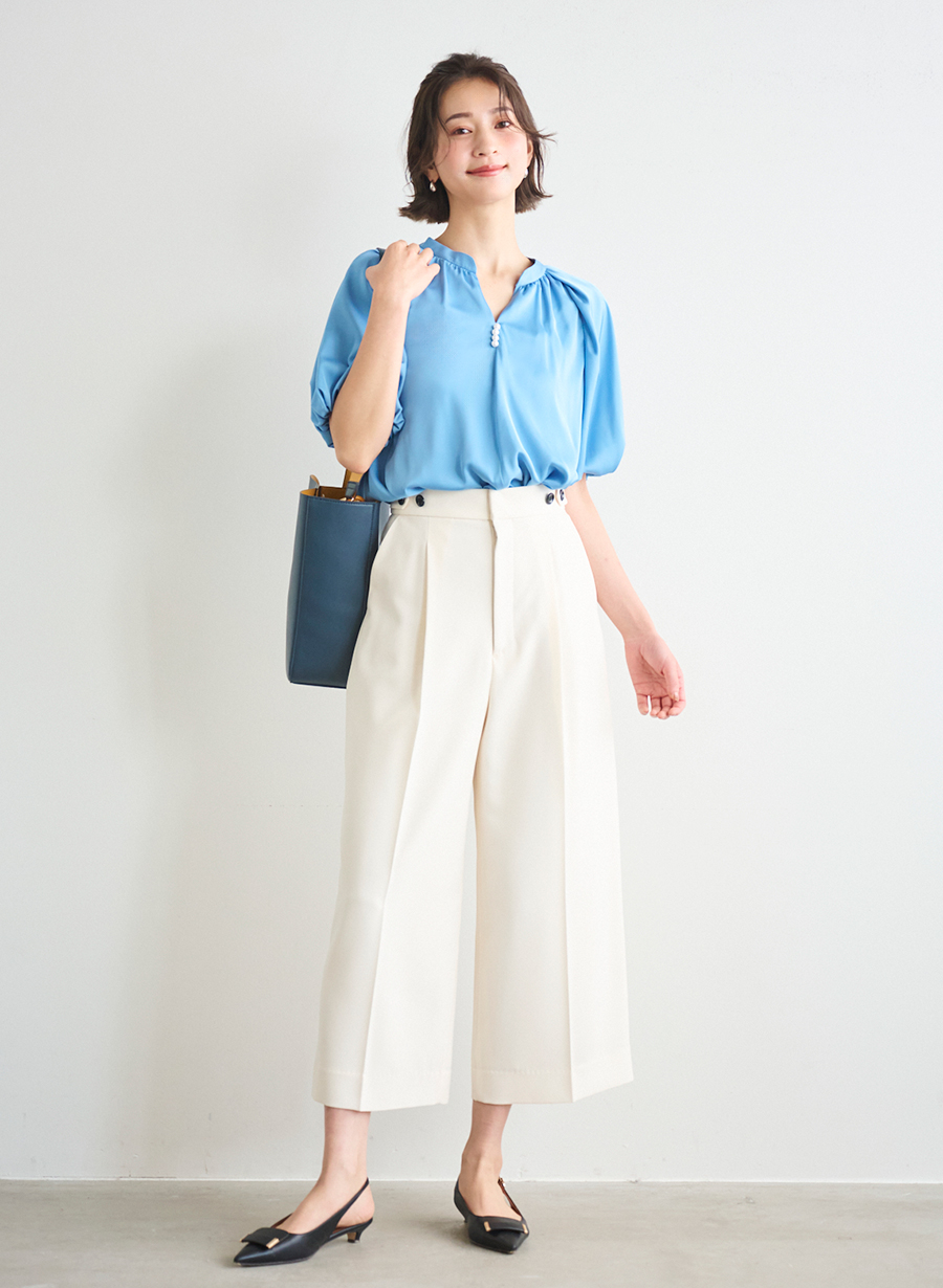 ・トレンドのバルーンスリーブブラウス。
