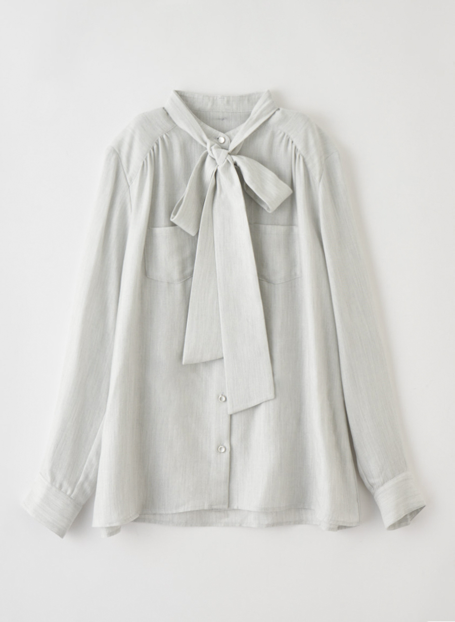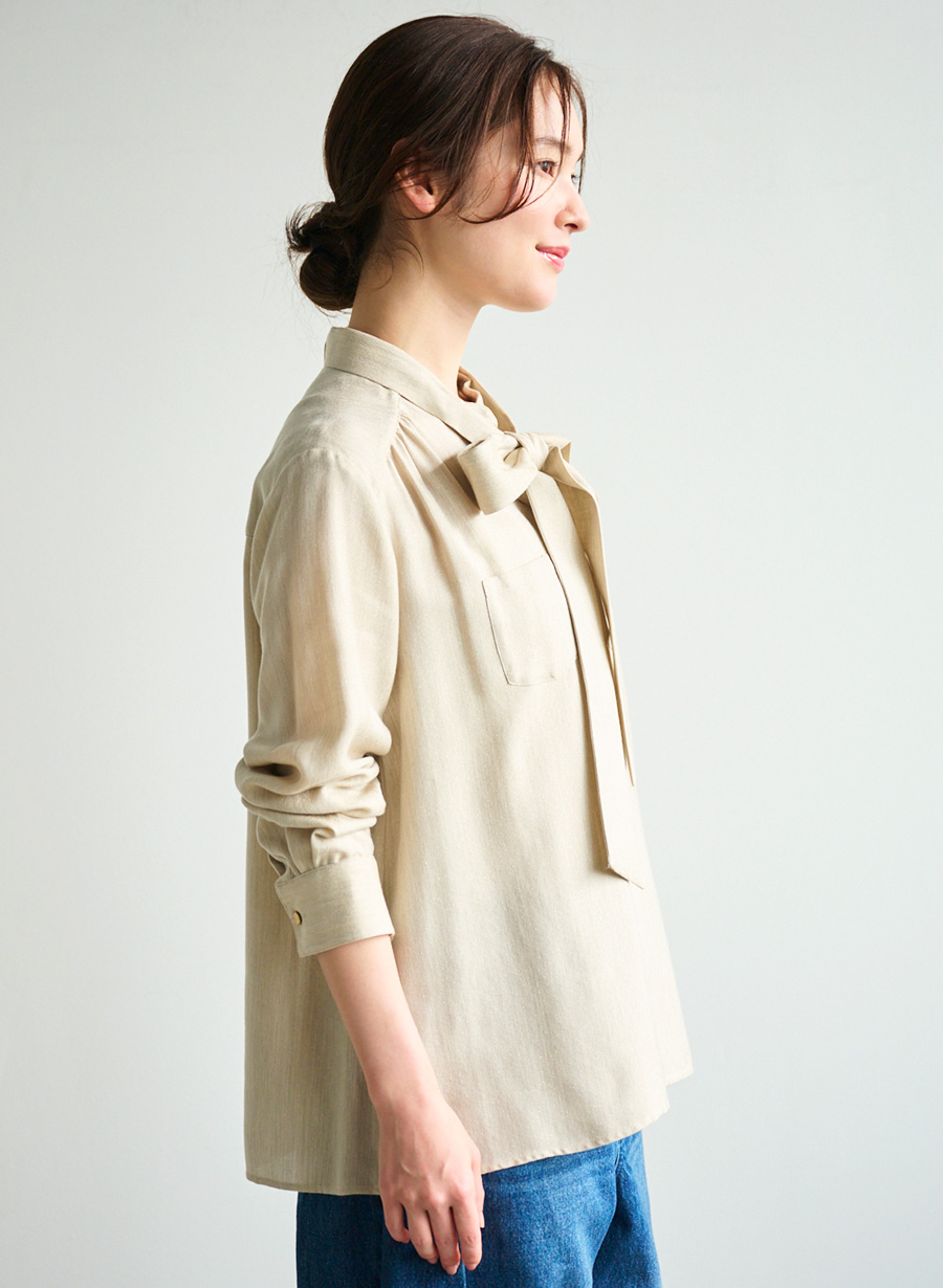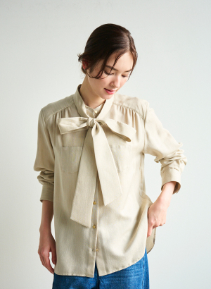 ・トップ調のナチュラル感とラメの組み合わせが新鮮なボウタイブラウス。