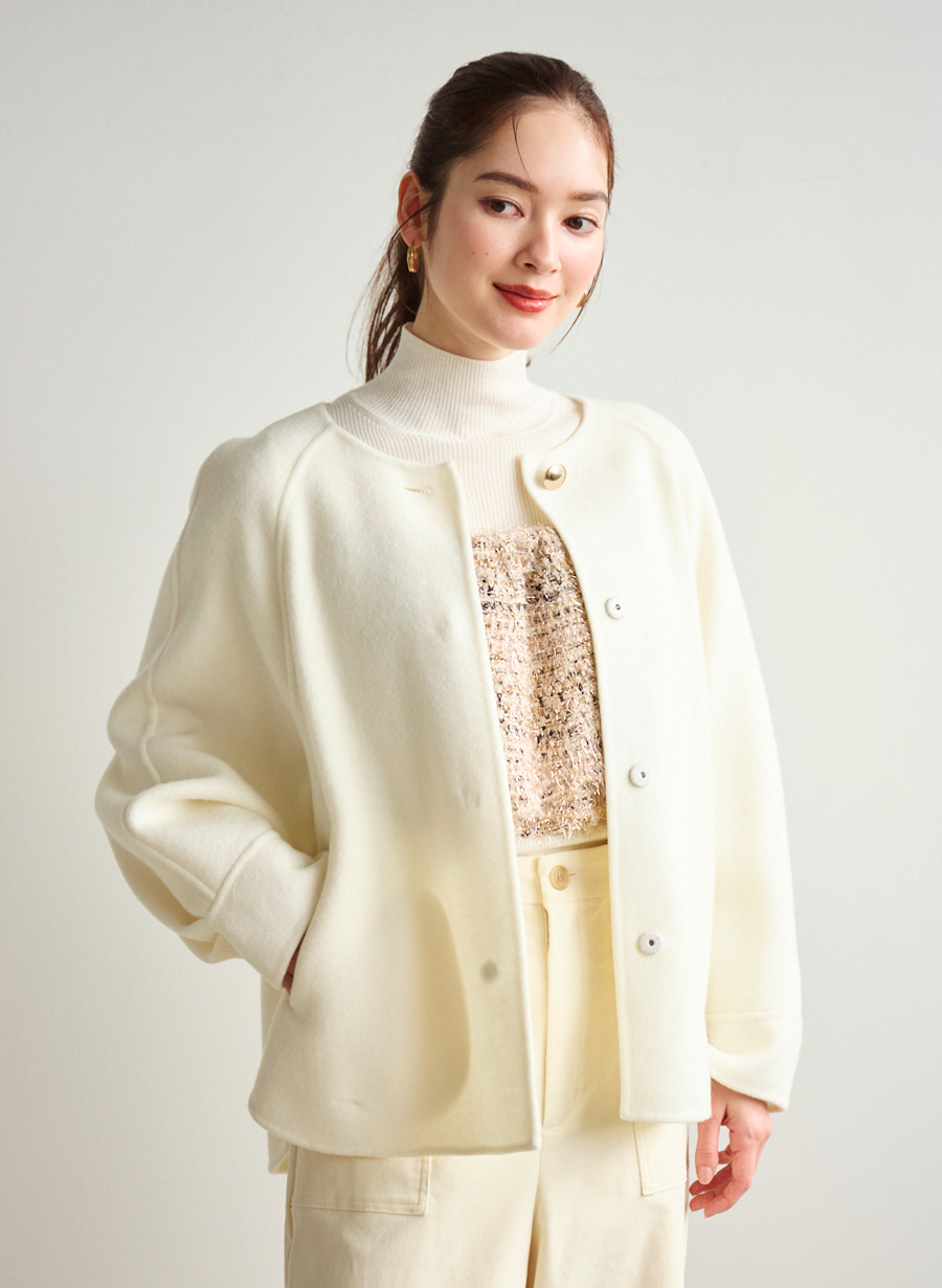 生地で微起毛加工を施し両面ビーバー仕上げにする事で、エレガントな素材感に仕上げました。