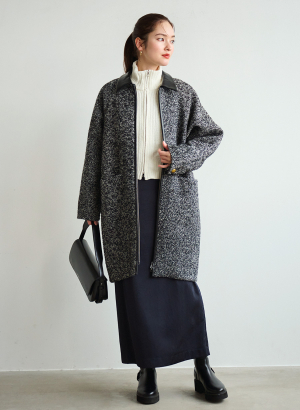 ・フロントジップにすることで、ツイードの温かみのある印象をキリっと引き締めました。