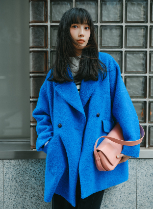 ・ダブルボタンや大きめの襟など、クラシカルなピーコートディテールですが、モダンなシルエットにアップデート。