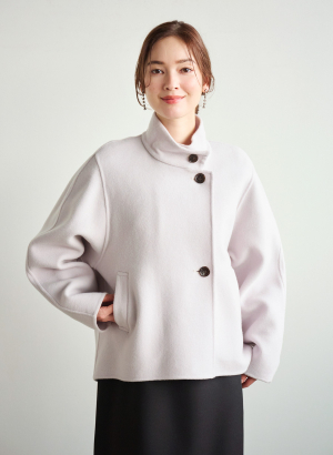 ・ 顔周りをすっきりと見せつつ、上品な印象を与える、こだわりの高さのスタンドカラーです。