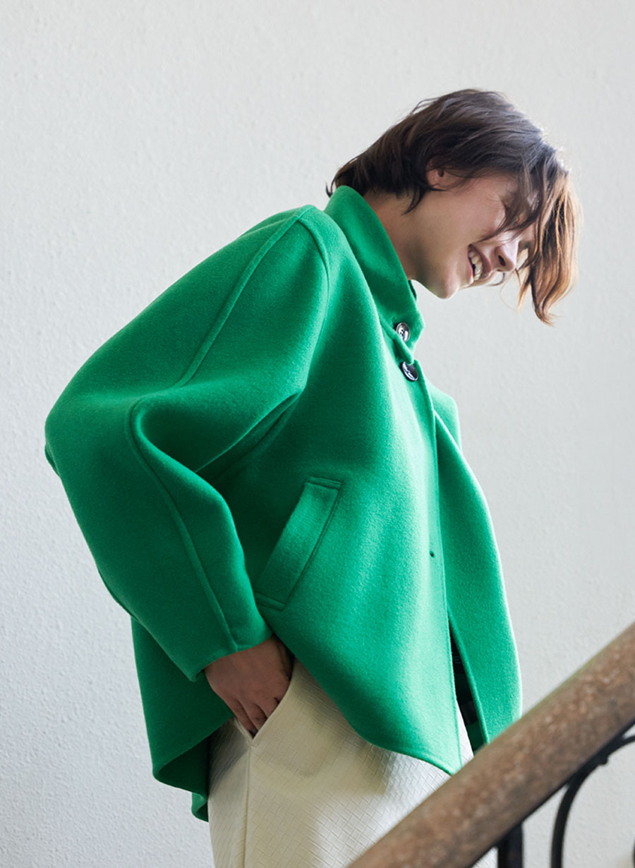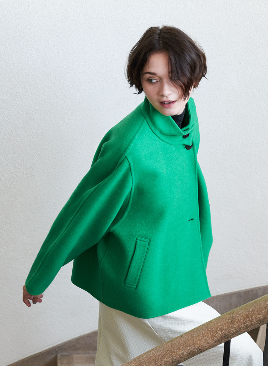 生地で微起毛加工を施しメルトン仕上げにする事で、適度なハリ感をもたせ仕立て映えのする素材感に仕上げました。