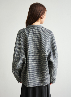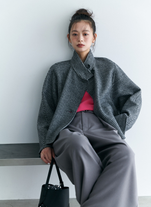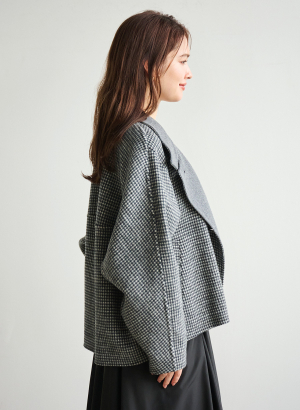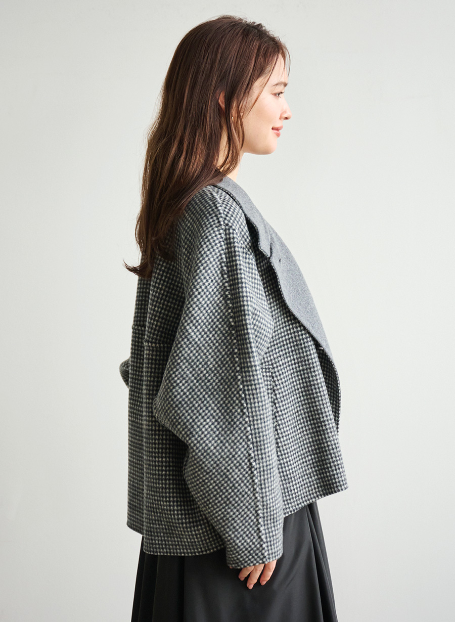 ウール調グレンチェックストレッチダブルジャケット