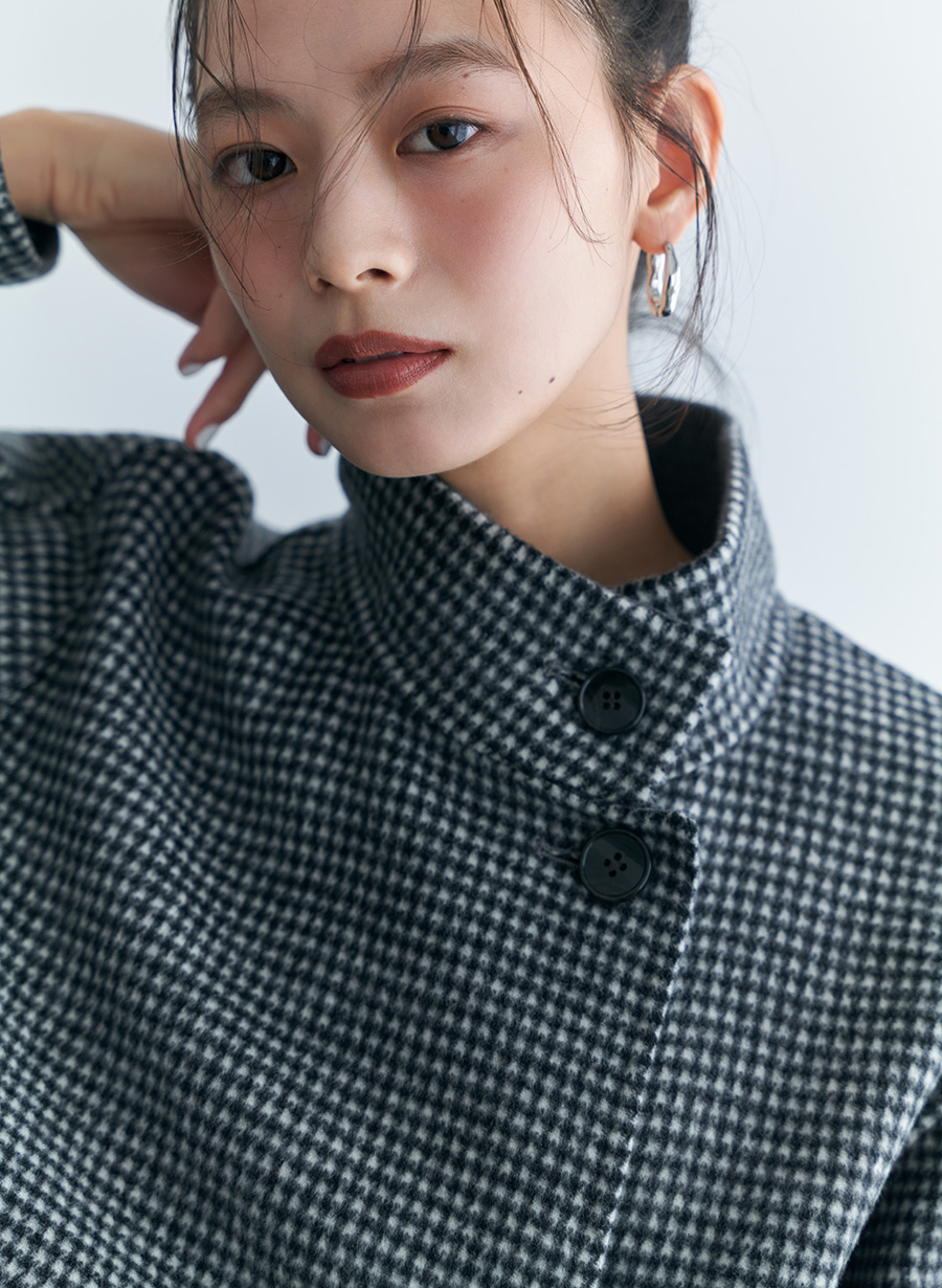 ・ 顔周りをすっきりと見せつつ、上品な印象を与える、こだわりの高さのスタンドカラーです。