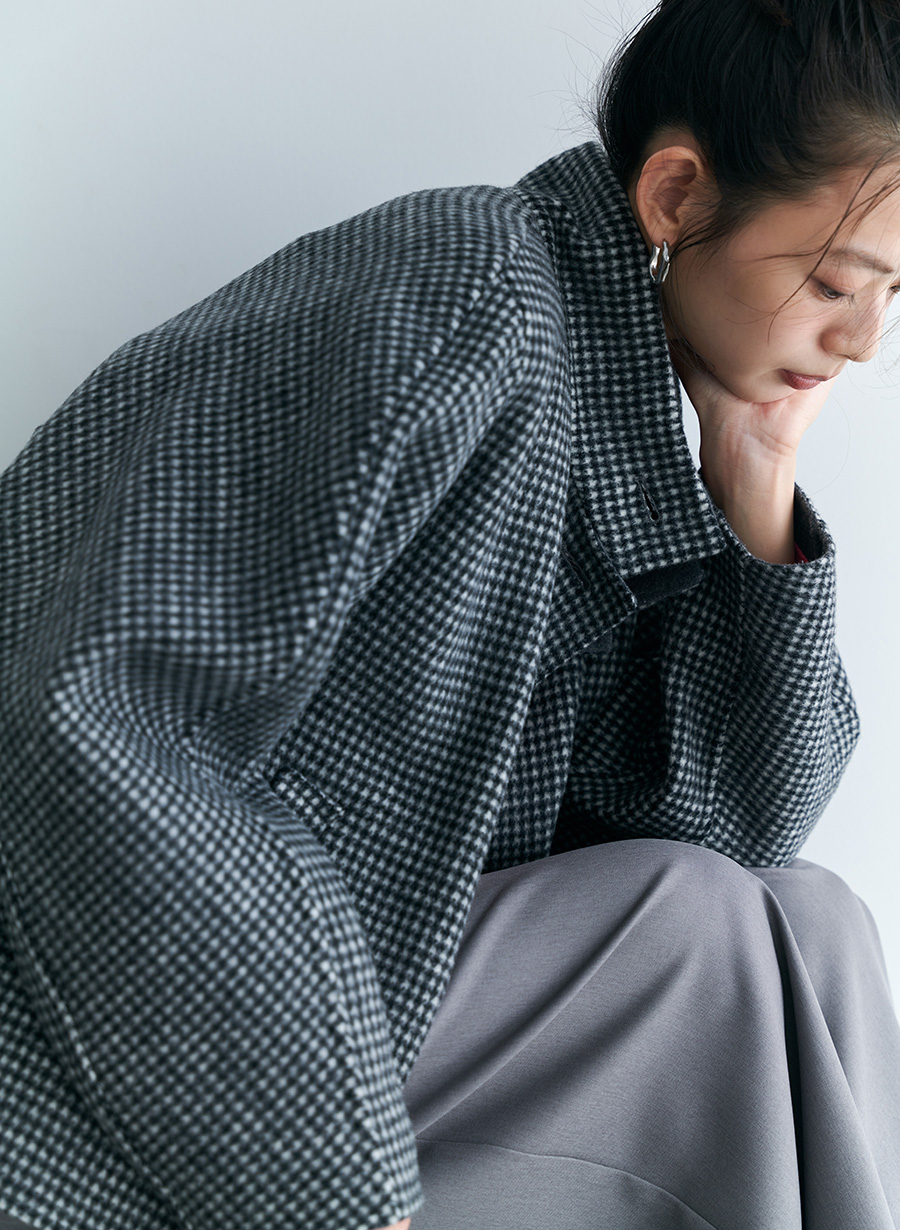 表側を千鳥柄、裏側を無地にしたオリジナルの柄を先染めで織り上げ、今年らしいクラシカルな表情に仕上げました。