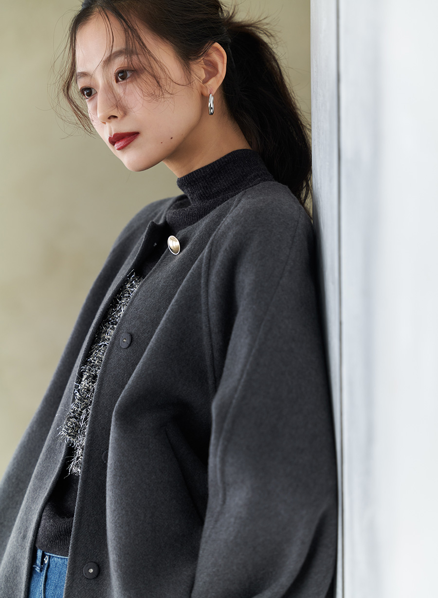 生地で微起毛加工を施し両面ビーバー仕上げにする事で、エレガントな素材感に仕上げました。