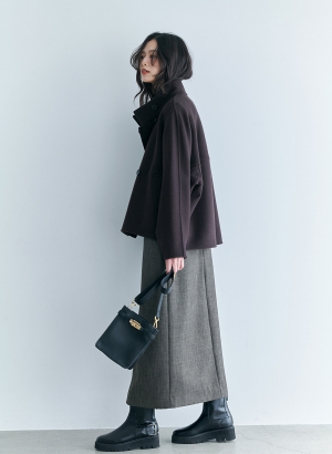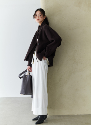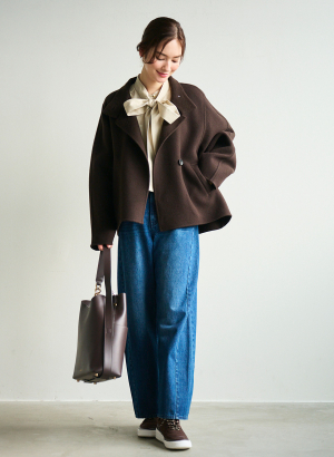 【着用感】ショート丈でボトムスのシルエットを選ばずに着用でき、様々なコーディネートに合います。