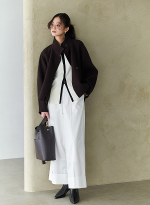 ・ 顔周りをすっきりと見せつつ、上品な印象を与える、こだわりの高さのスタンドカラーです。