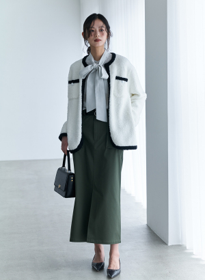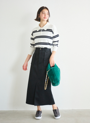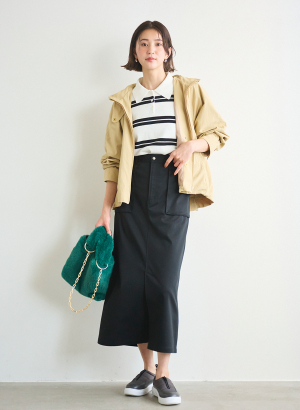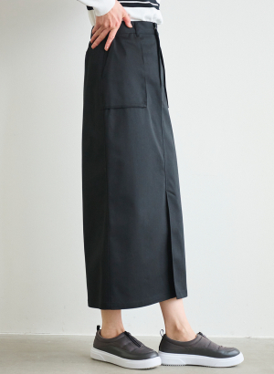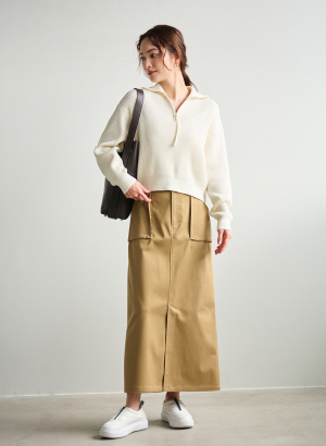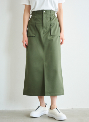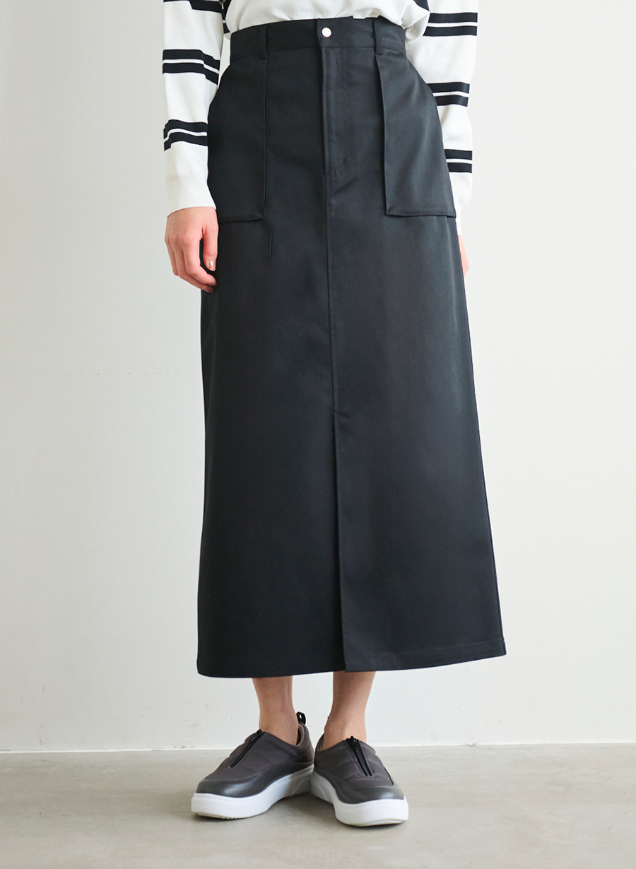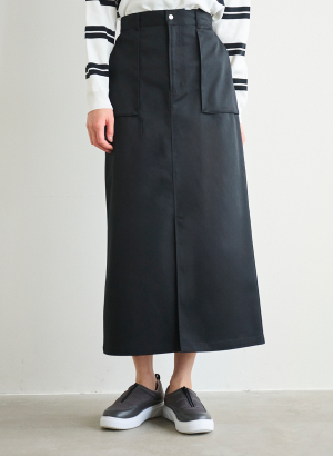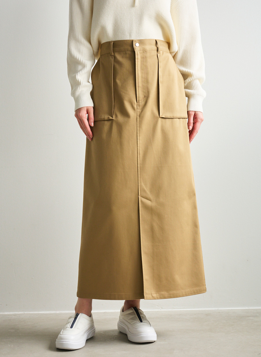 ・微光沢感のあるきれいめなチノ素材を使用したナロースカート。