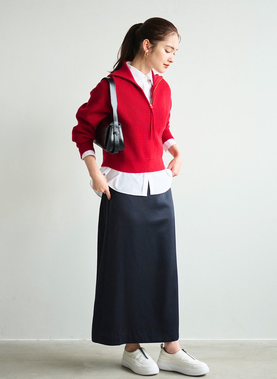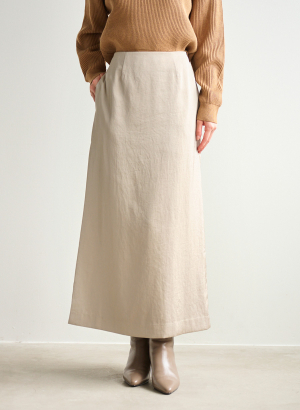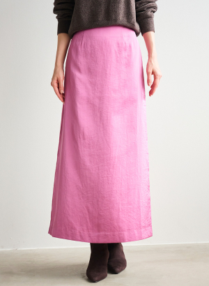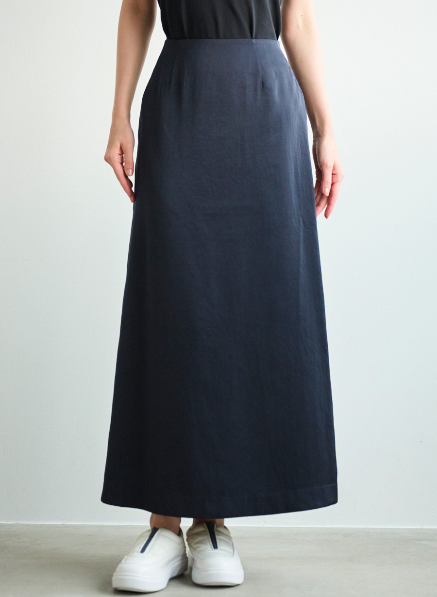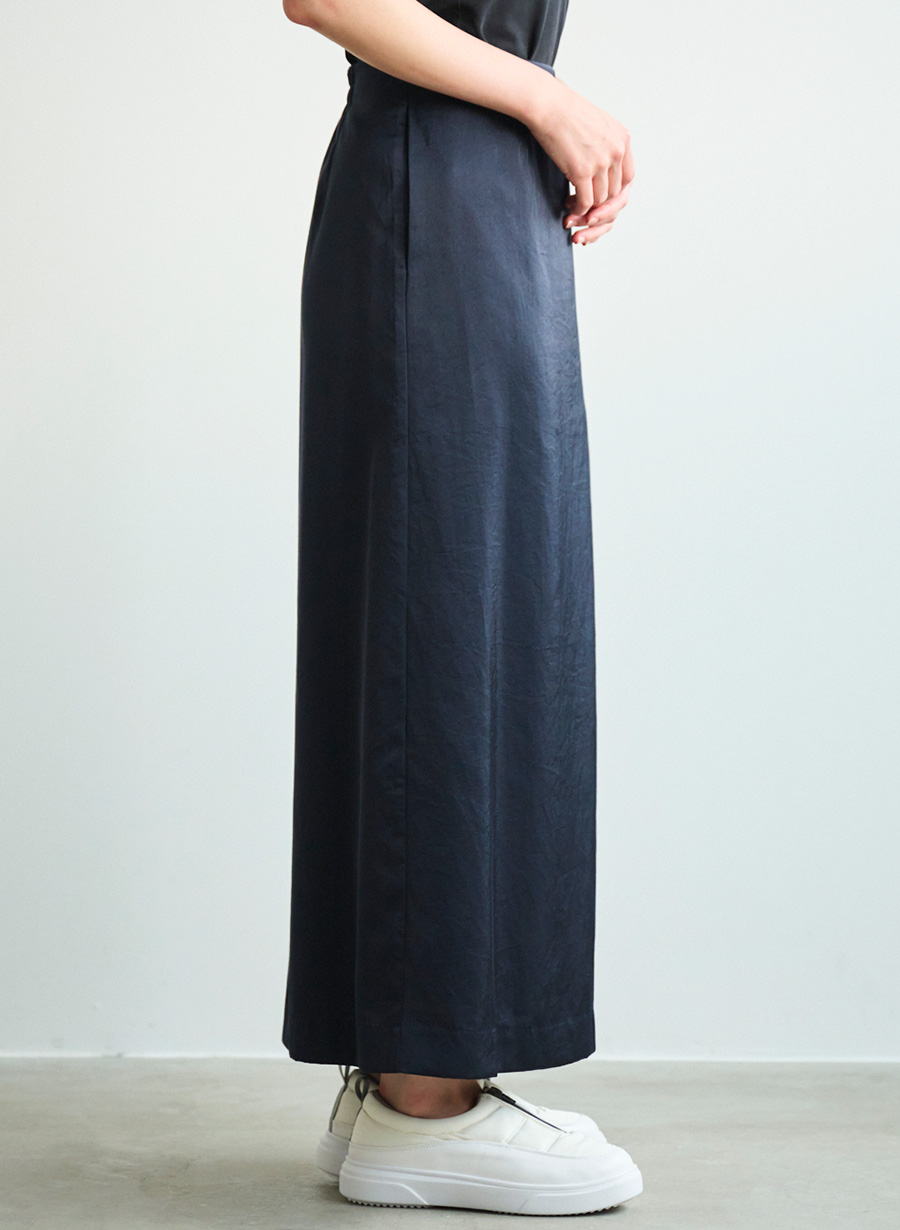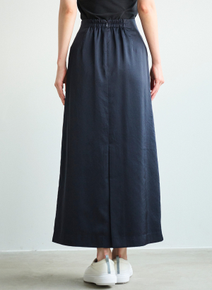 ・すっきりとしたシルエットのサテンナロースカート。