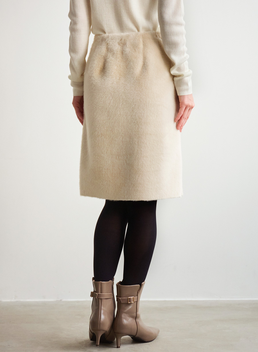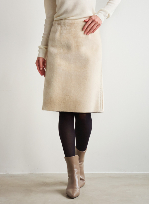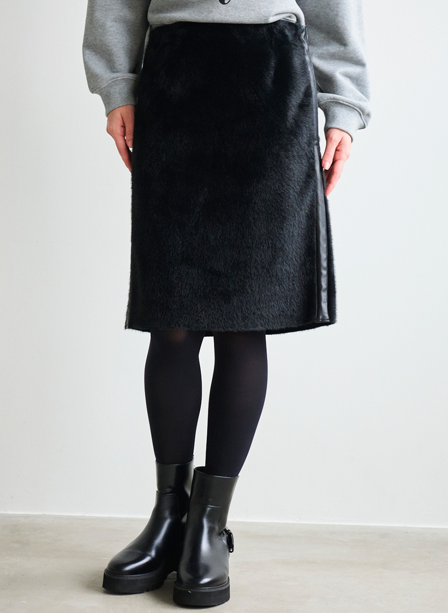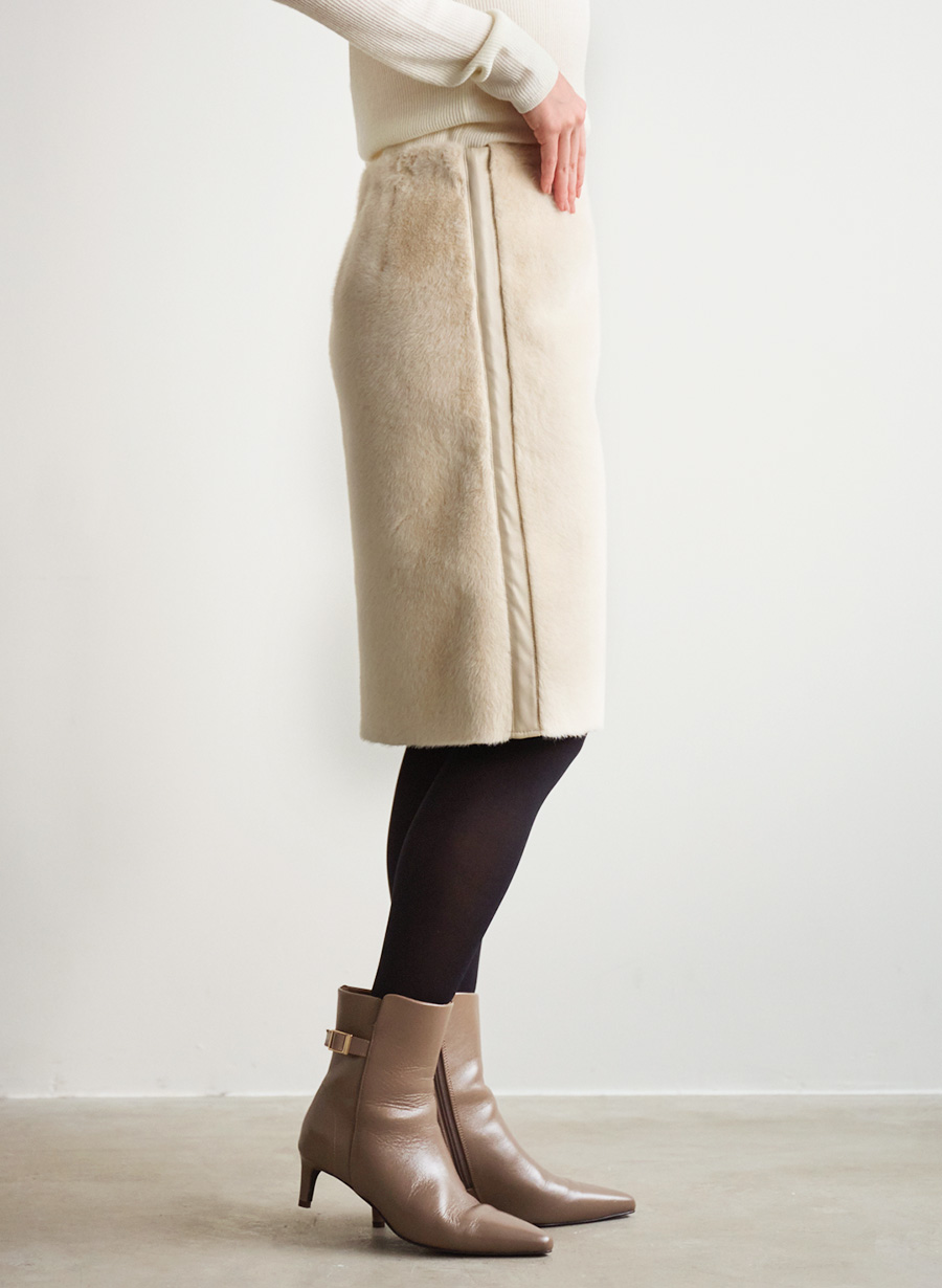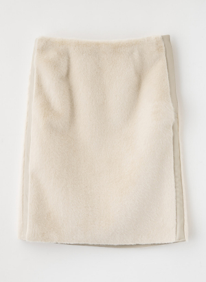 表側には毛足の短い滑らかなタッチのファーを、裏側に合成皮革をボンディングした素材を使用。
