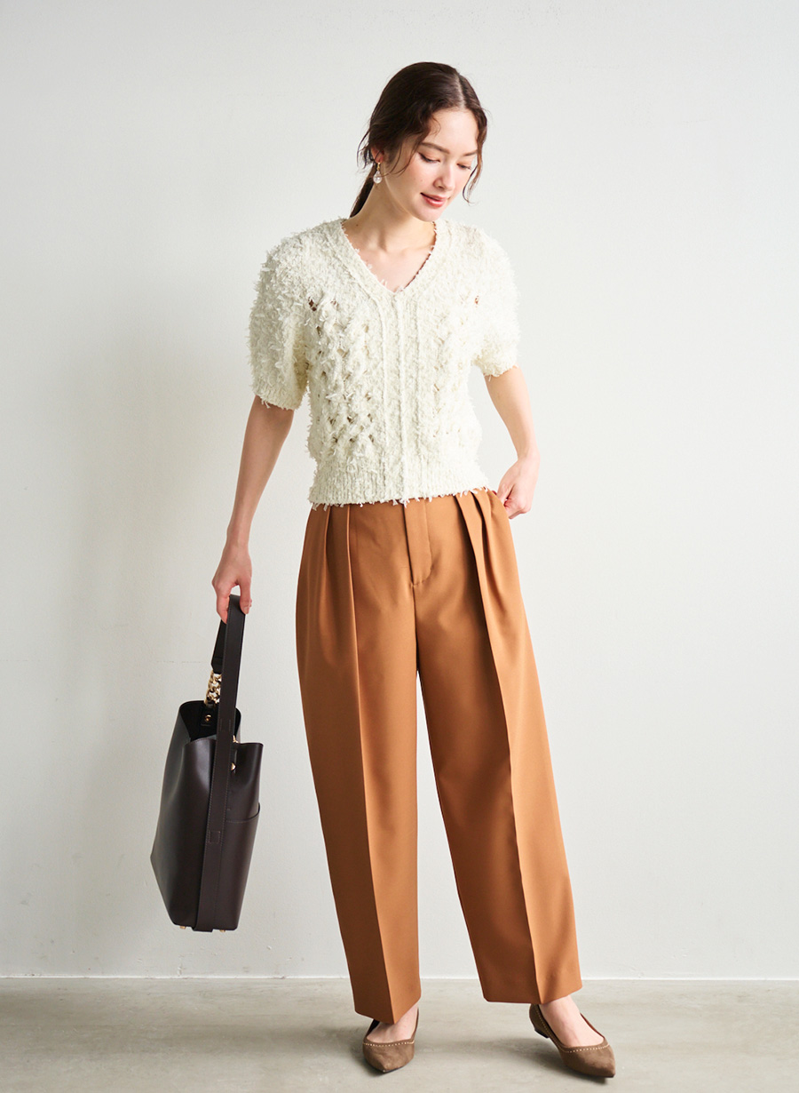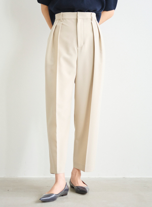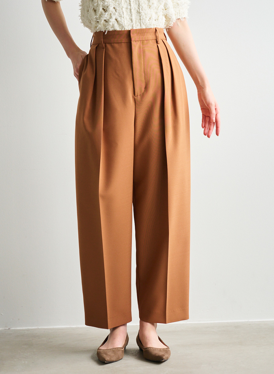・トレンドの丸みのあるシルエットが特徴のタックパンツ。