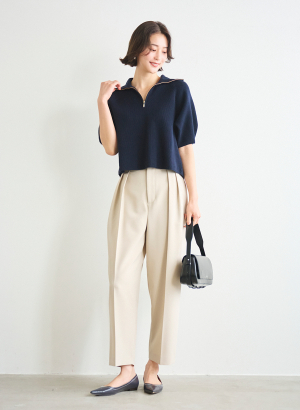・ショート丈との相性が良く、 ハーフジップショートニットプルオーバー