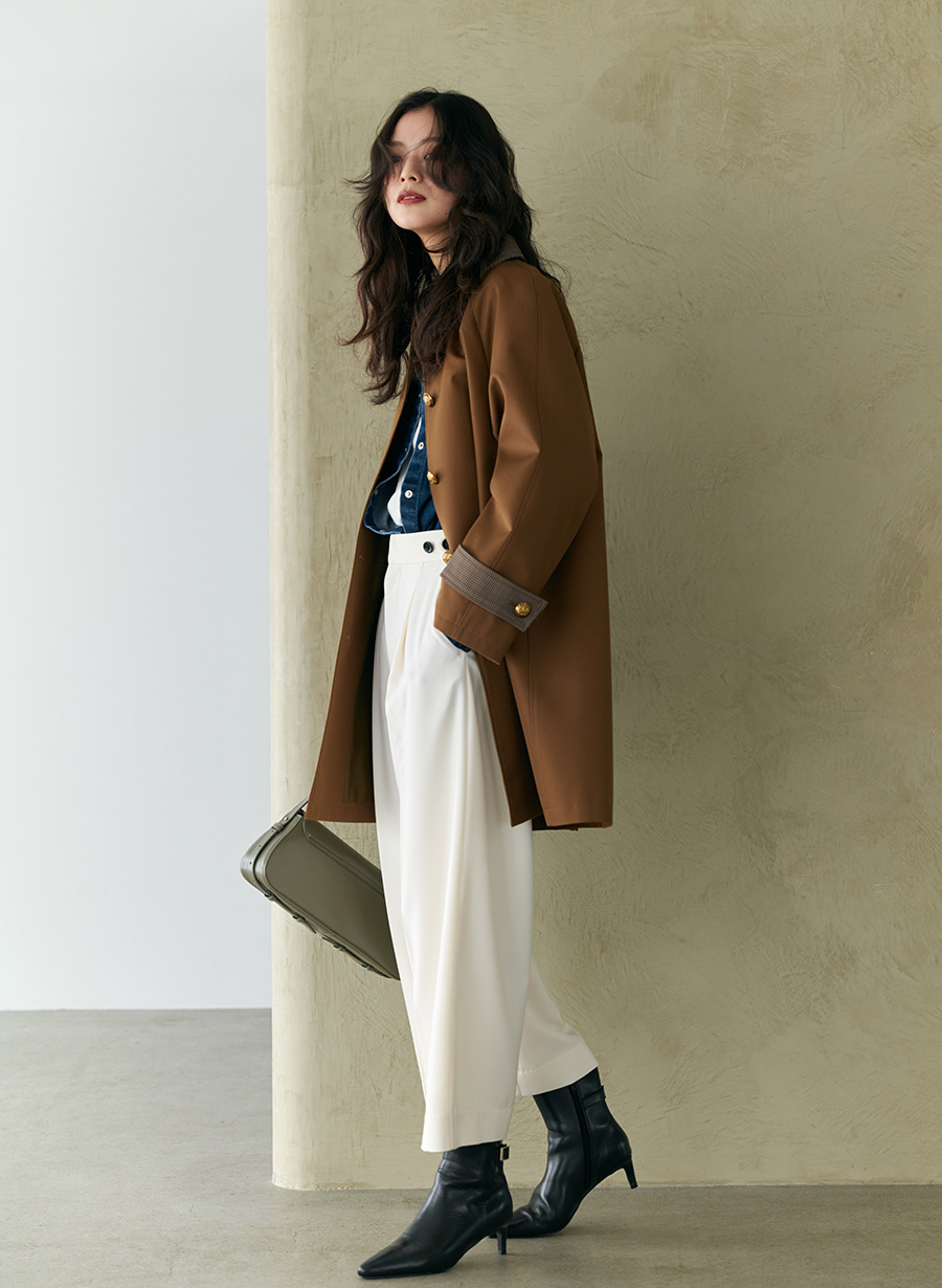 ・ウエストの釦ディテールがアクセント。