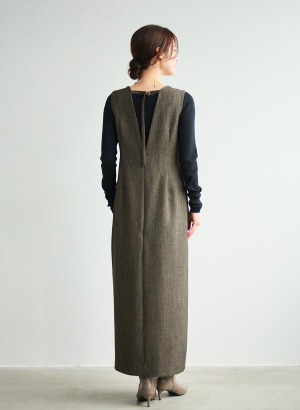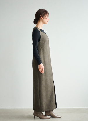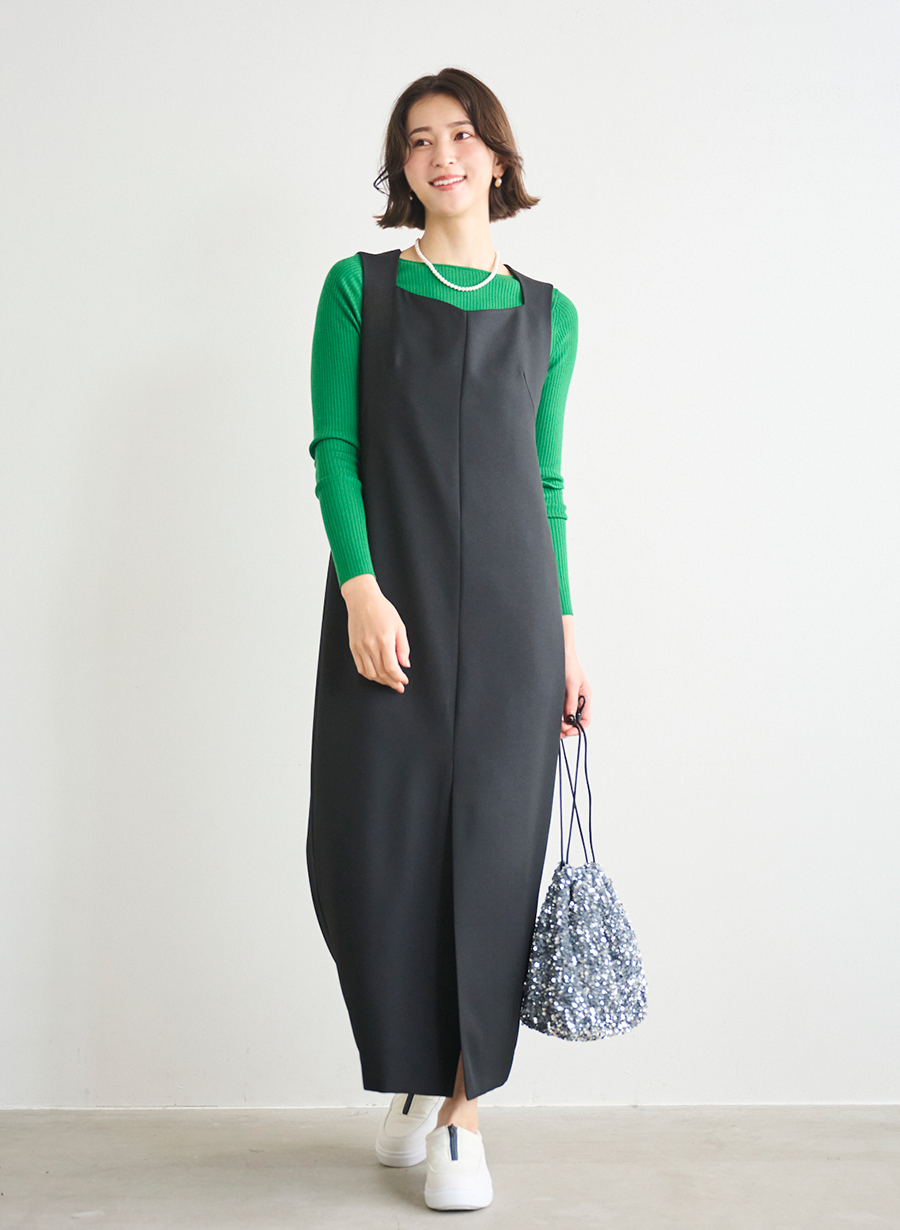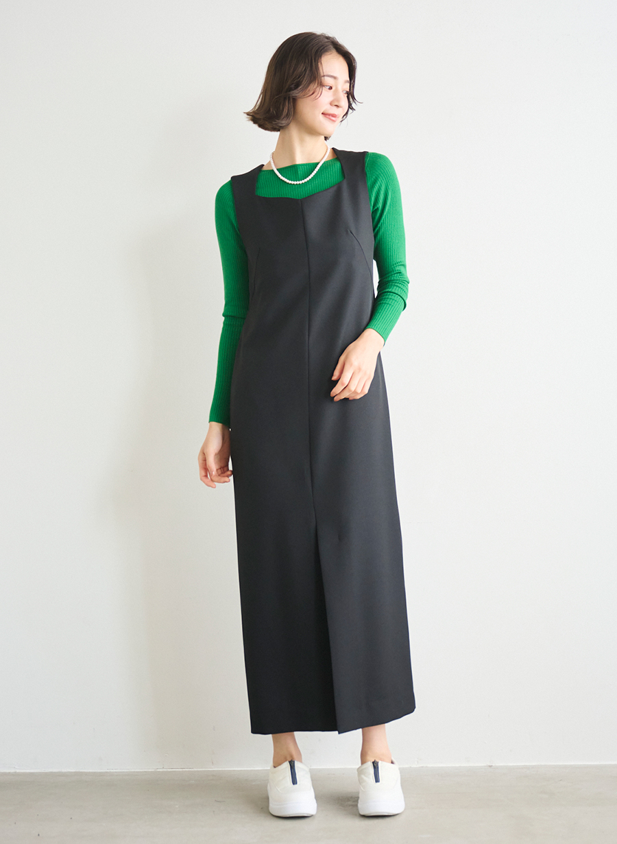 ・潔いナローシルエットがOggiらしい、クールでミニマルなジャンパースカート。