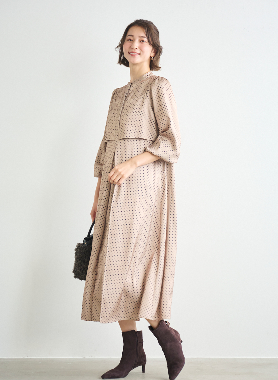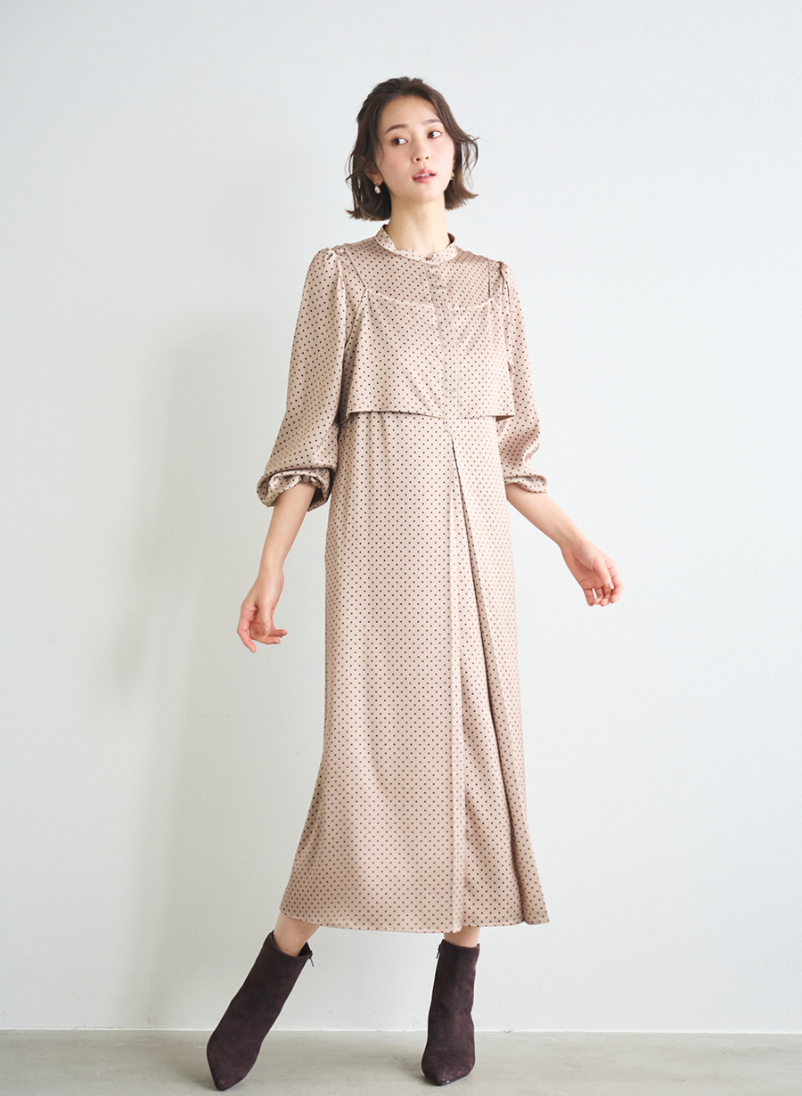・ビスチェを重ね着したようなディテールが今年らしいシャツワンピースデザイン。