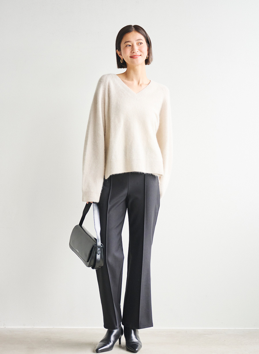 ・脚のラインが綺麗に見えるよう、シルエットにこだわったフレアパンツ。