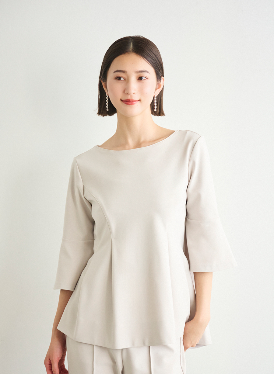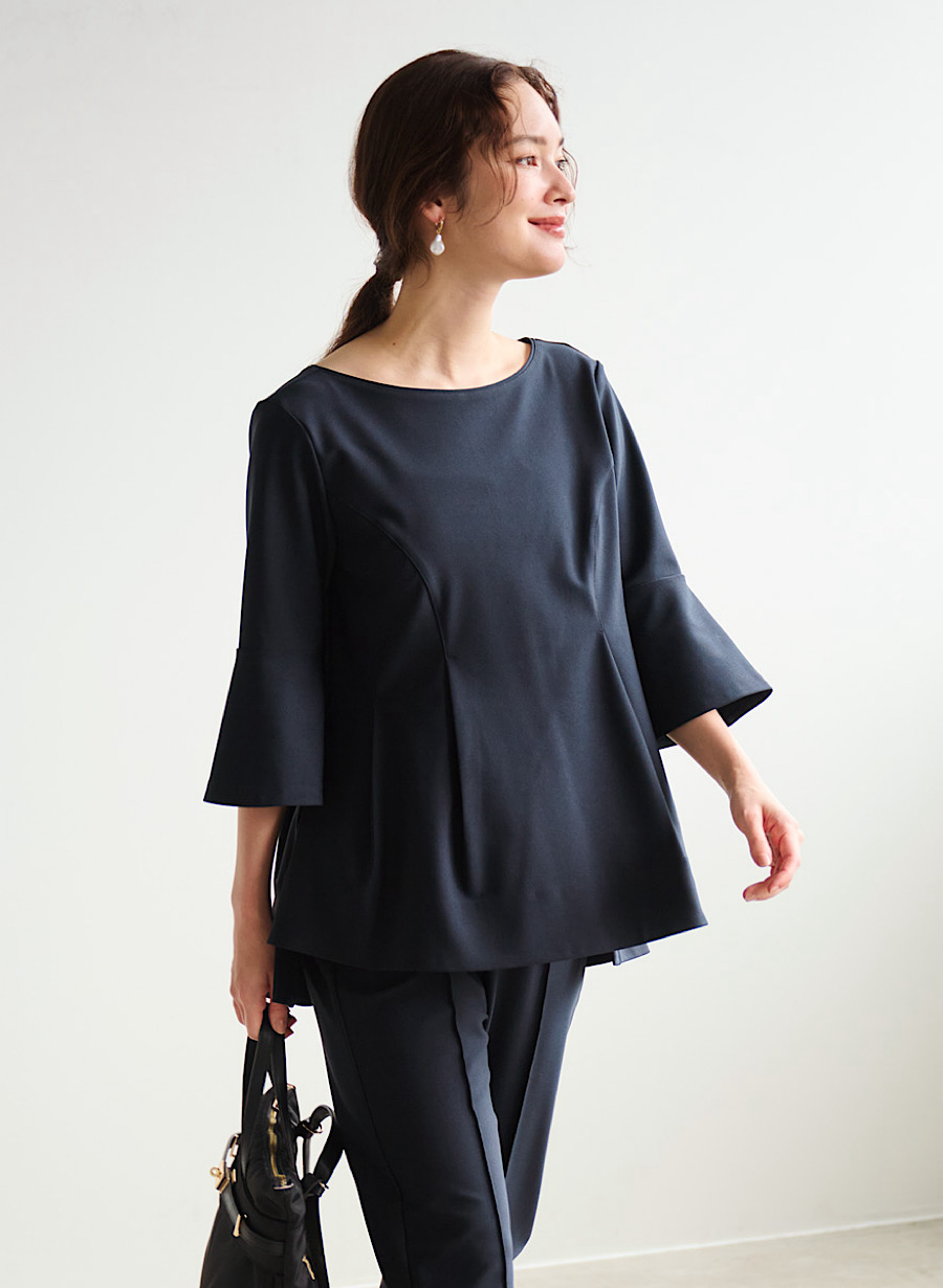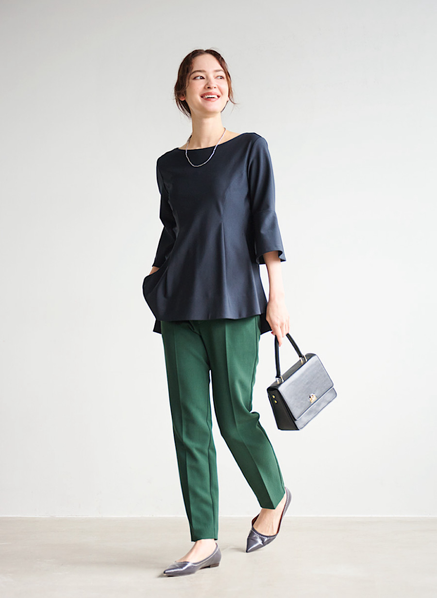 ・かぶりで着脱もできる素材でありながら、その仕立て映えするきれいな素材感が、ブラウスのようなきちんと感を出してくれます。
