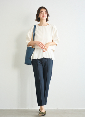 ・タフタ部分はギャザーとタックを組み合わせ、スッキリとさせつつもペプラムの存在感はしっかりと出しました。