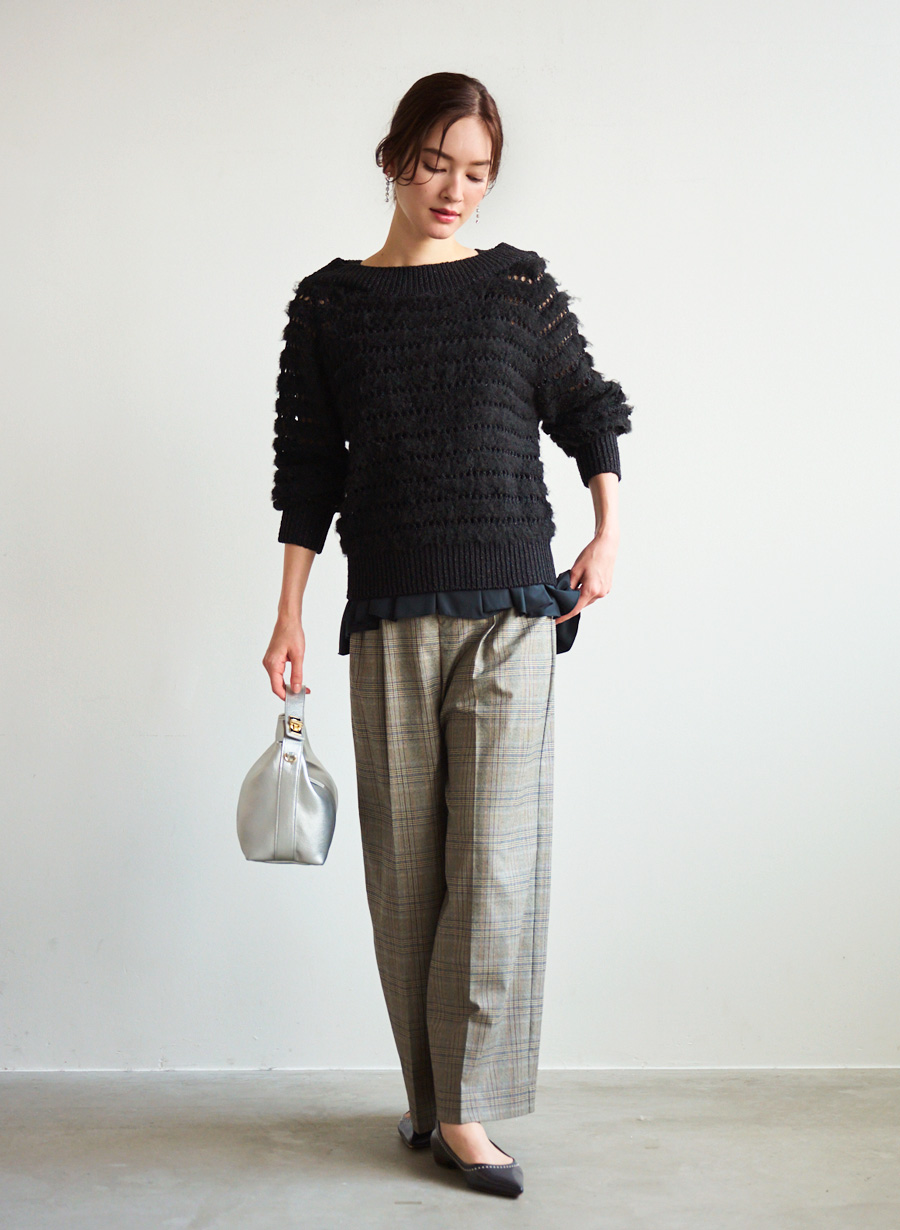 裾部分には、膨らみのあるソフトな風合いが特徴のタフタ素材を使用。
