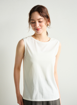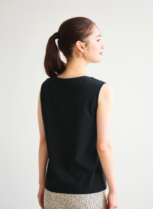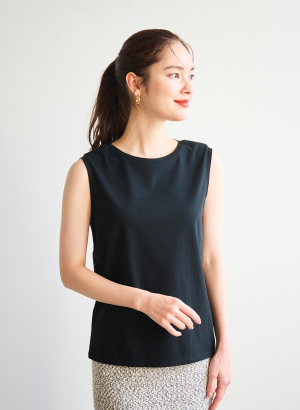 ・ほんのり透け感のある薄手の生地なので、カーディガンの中に着用してもスッキリとお召しいただけます。