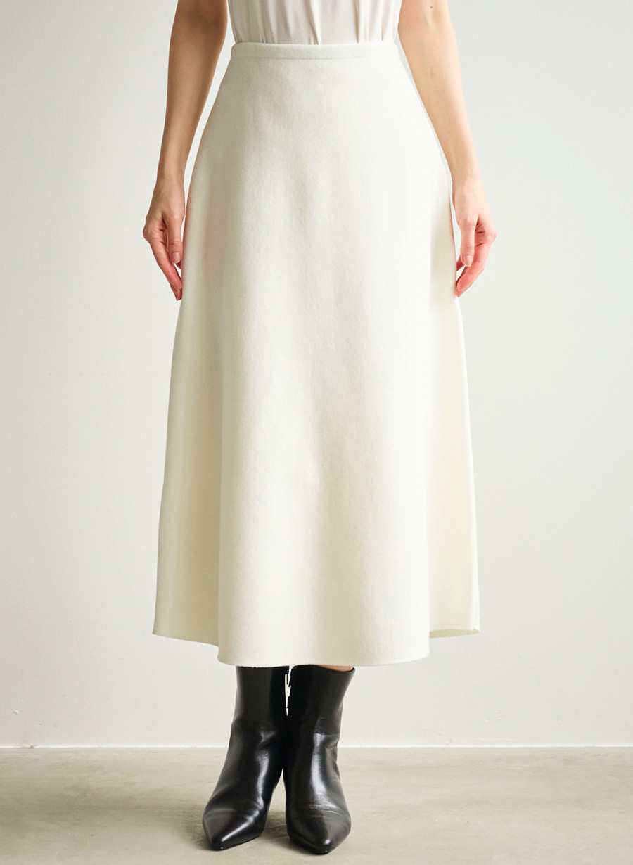 【着用感】セミフレアシルエットが上品で可愛いです!長めのトップスにも、クロップド丈のトップスにも合わせやすいシルエットでとても万能です。