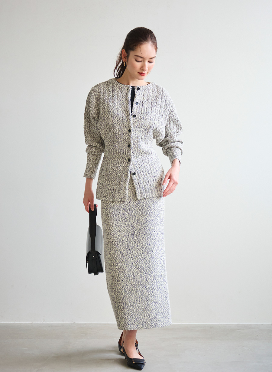 ・同シリーズカーディガンとセットアップでバランスよく着こなせるタイトシルエット。