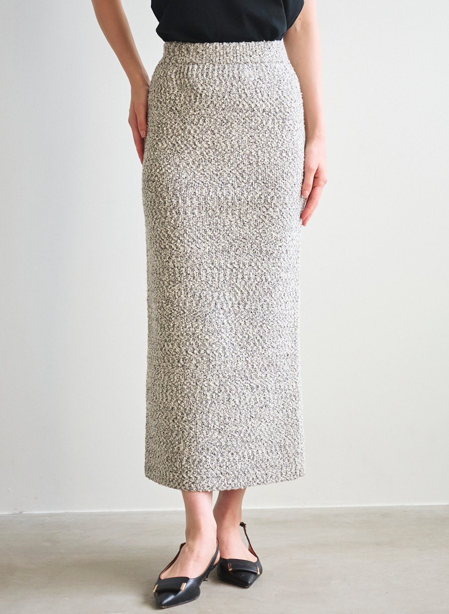 【素材感】膨らみのある糸で編み上げられた、肌触りの柔らかいニットスカートです。