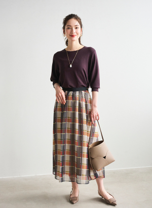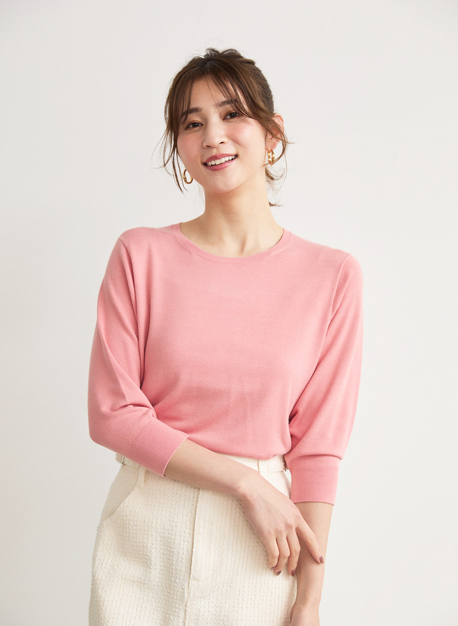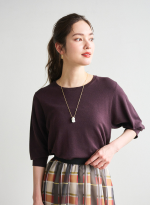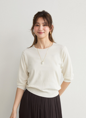 ・こちらはクルーネックのデザインです。いつものレーヨンシルクニットより着丈は短く、インナーとしても使いやすいサイズ感にしています。