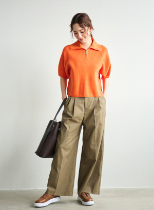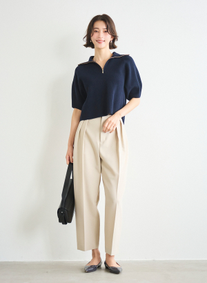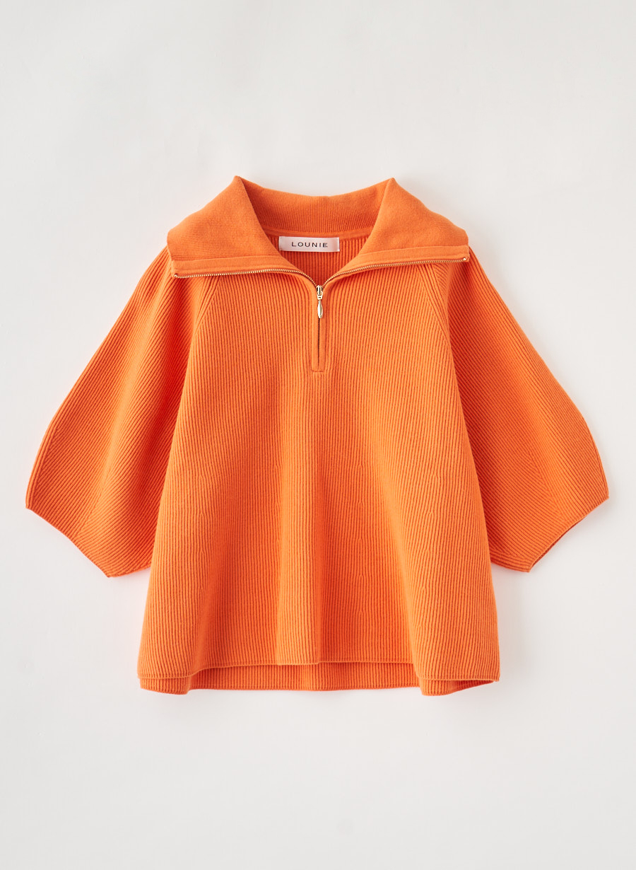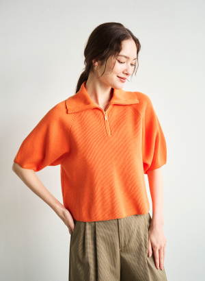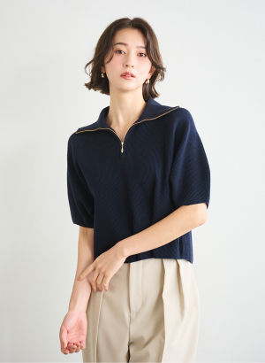5. ハーフジップショートニットプルオーバー