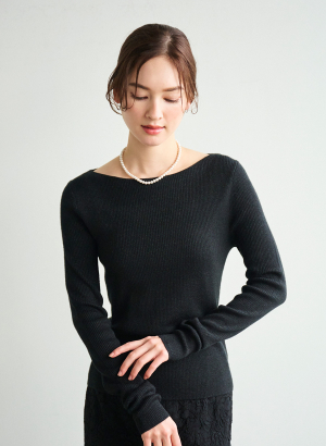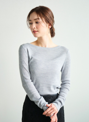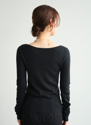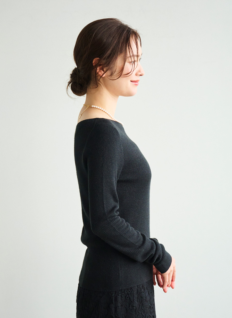【着用感】リブ素材でピタッとするので冬のインナー使いにとてもおすすめです✨ボートネックで上品見えするのも嬉しいポイント!!