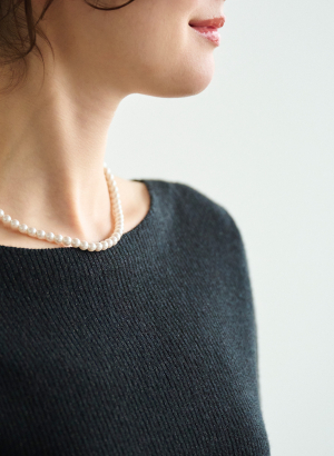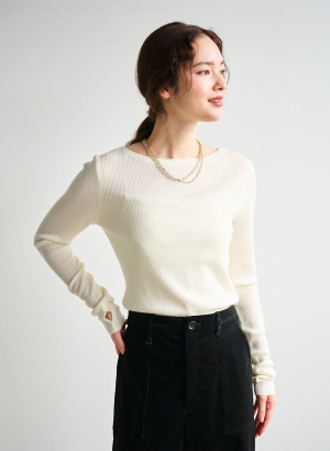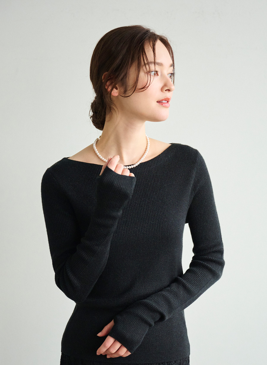 ・広めのボートネック×袖口のサムホールなど、ミリ単位でこだわったデザインポイントは、