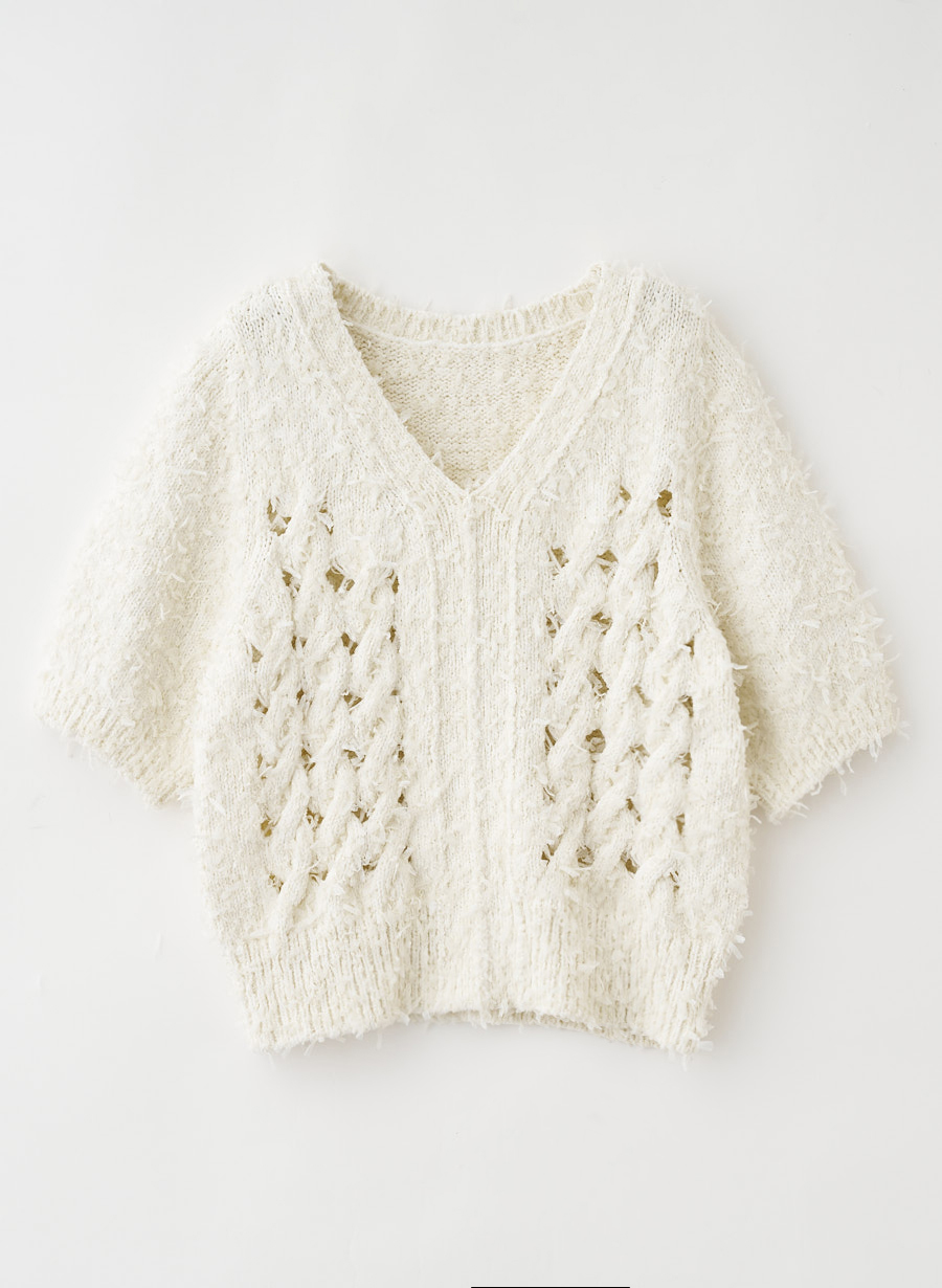 5. リボンチュールケーブルニットプルオーバー