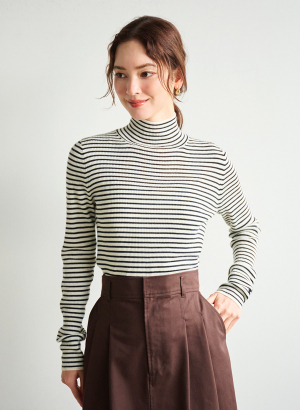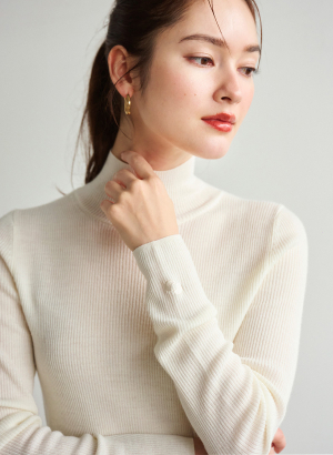 ・毎年冬定番のシアーリブニット。インナーとしてもトップスとしても重宝します。