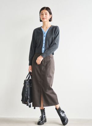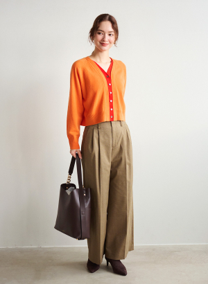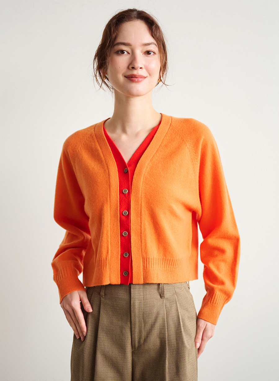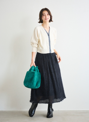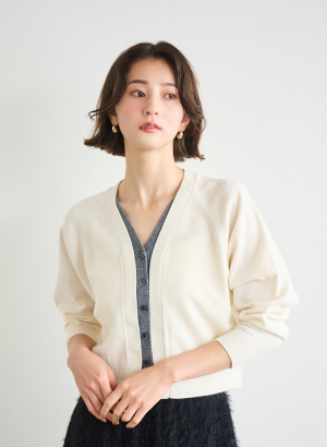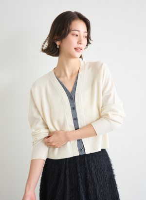 ・レイヤードしたようなディテールが特徴のショートカーディガン。