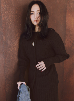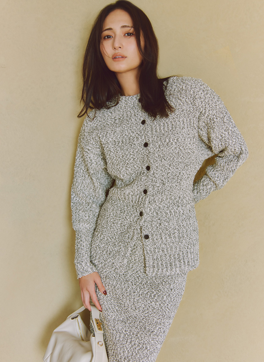 ・スタイリスト佐藤佳菜子さんとのコラボレーションならではの、デザイン性の詰まったニットカーディガン。