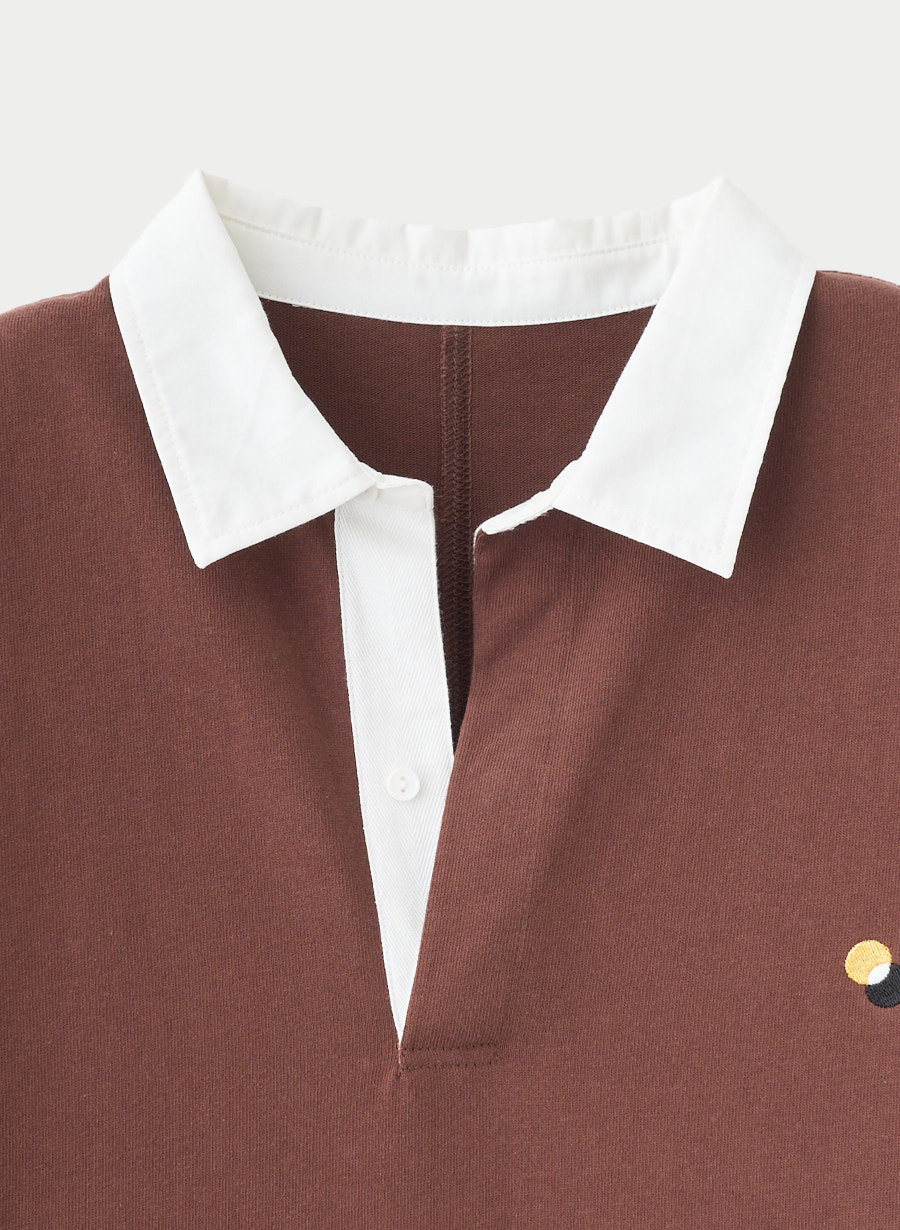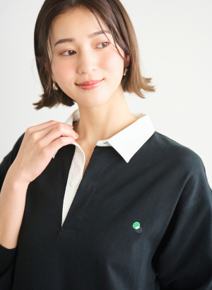 ラガーシャツらしいしっかりとした襟は、少し後ろに抜いてスタイリングするのもおすすめです!セットの巾着バッグは肌触りの良いフリース素材を使用したナップサック型。