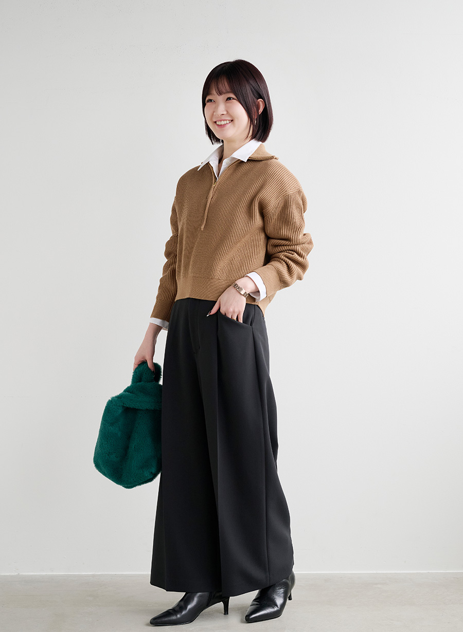 【着用感】持つだけで冬らしさがでます。チェーン部分は取り外し可能なので、雰囲気を変えてお楽しみ頂けます◎