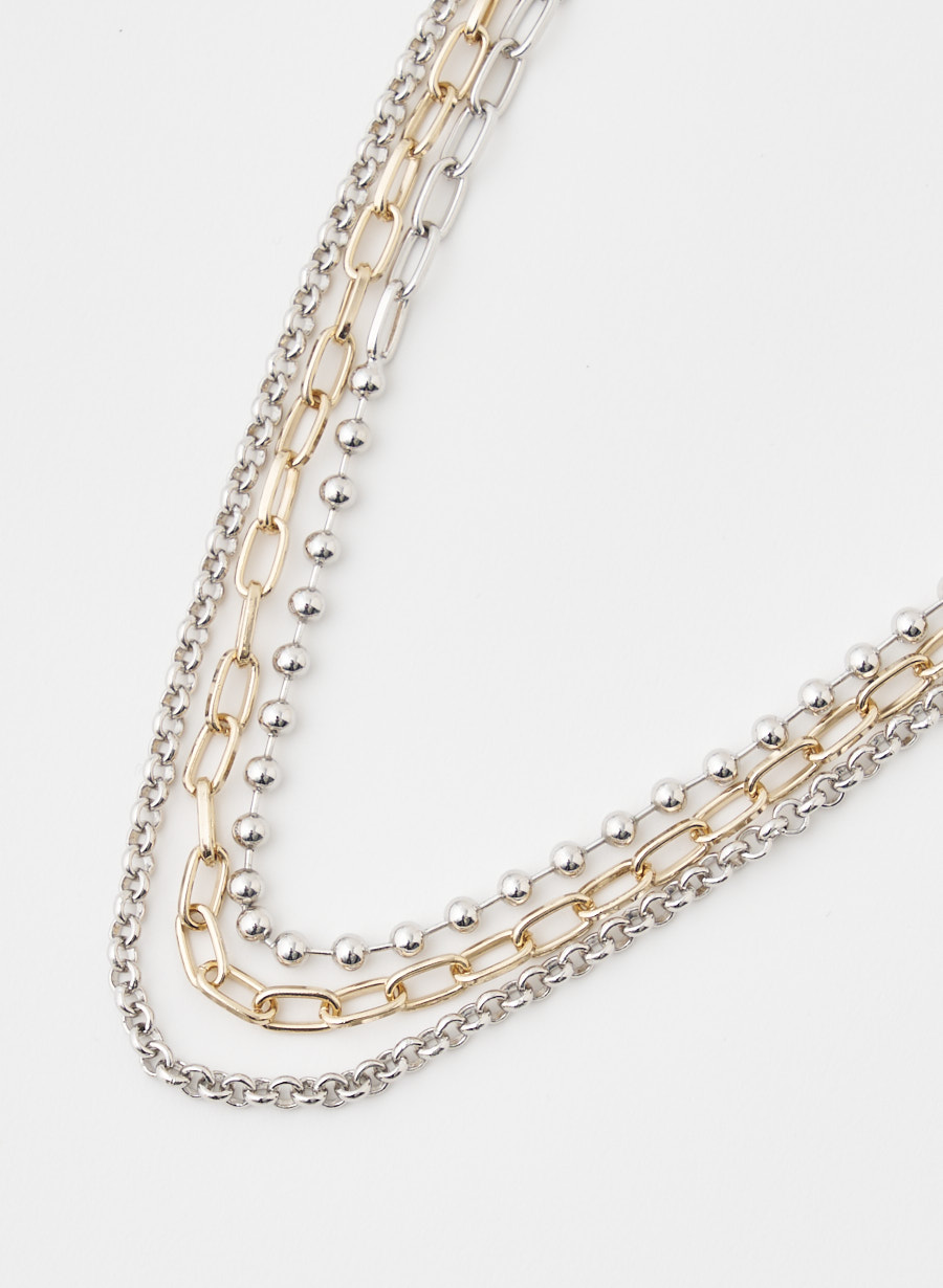 シンプルなチェーンを組み合わせることにより、程よいボリューム感とスタイリングにも合わせやすいデザインに仕上げました。