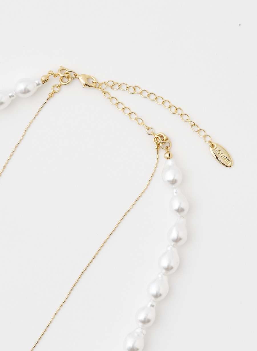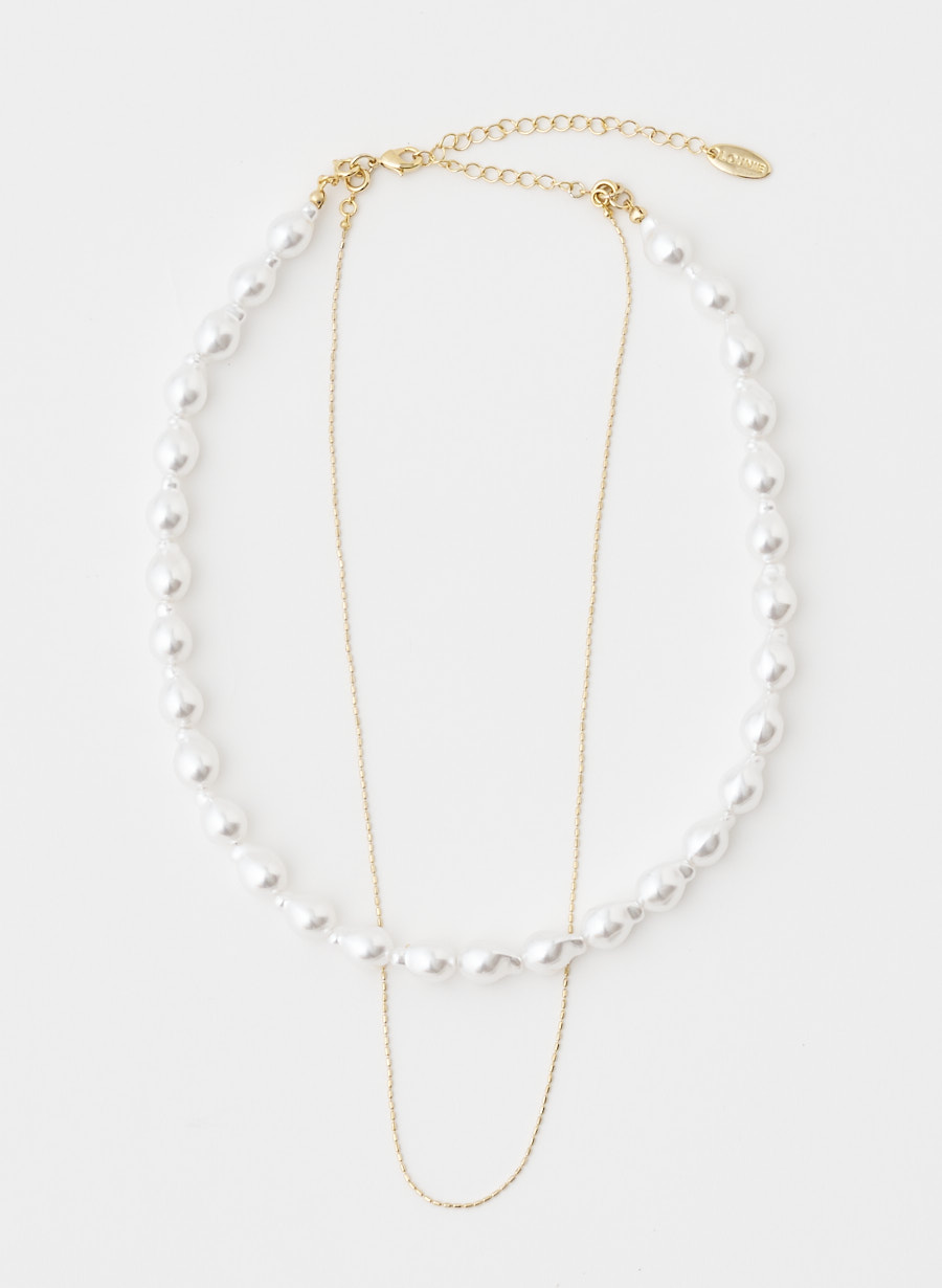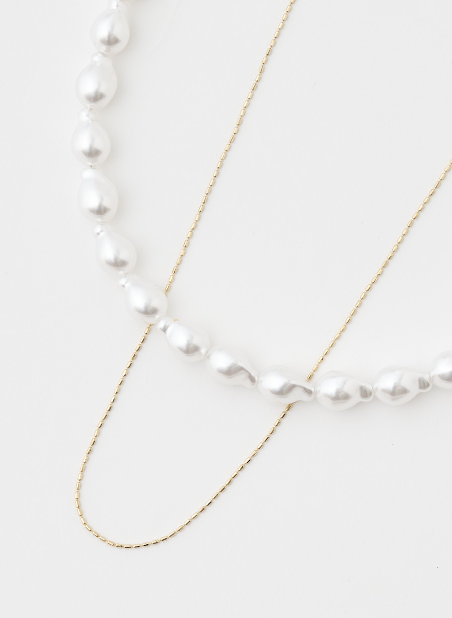 ボリューム感のあるパールに、あえて繊細なボールチェーンを組み合わせてデザイン性のあるアイテムに。