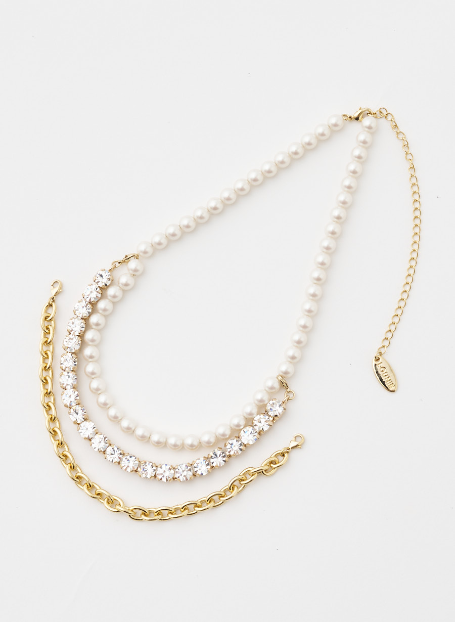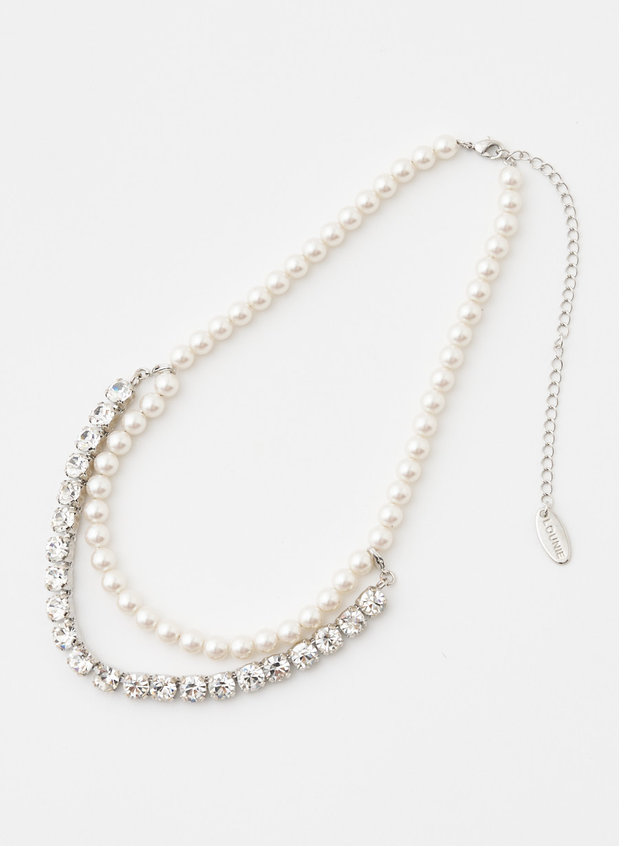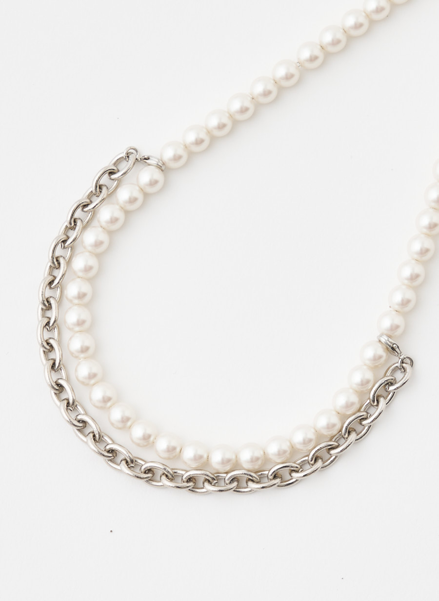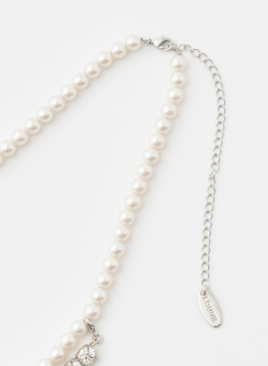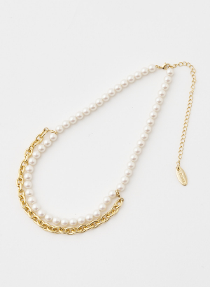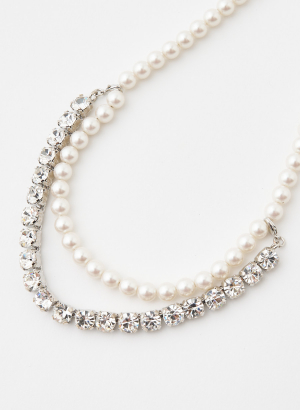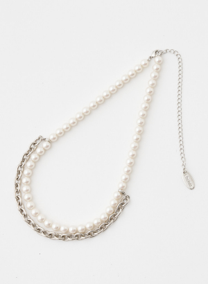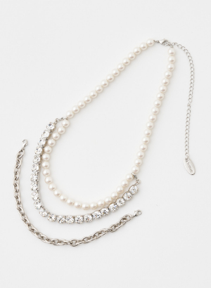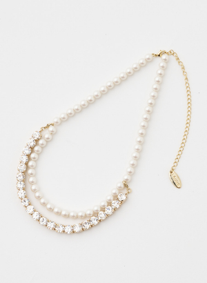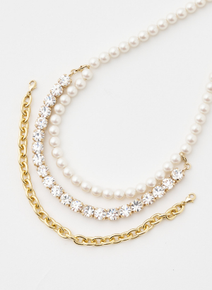 シンプルな小粒パールのネックレスにチェーンパーツとダイヤレーンパーツがセットになった企画です。