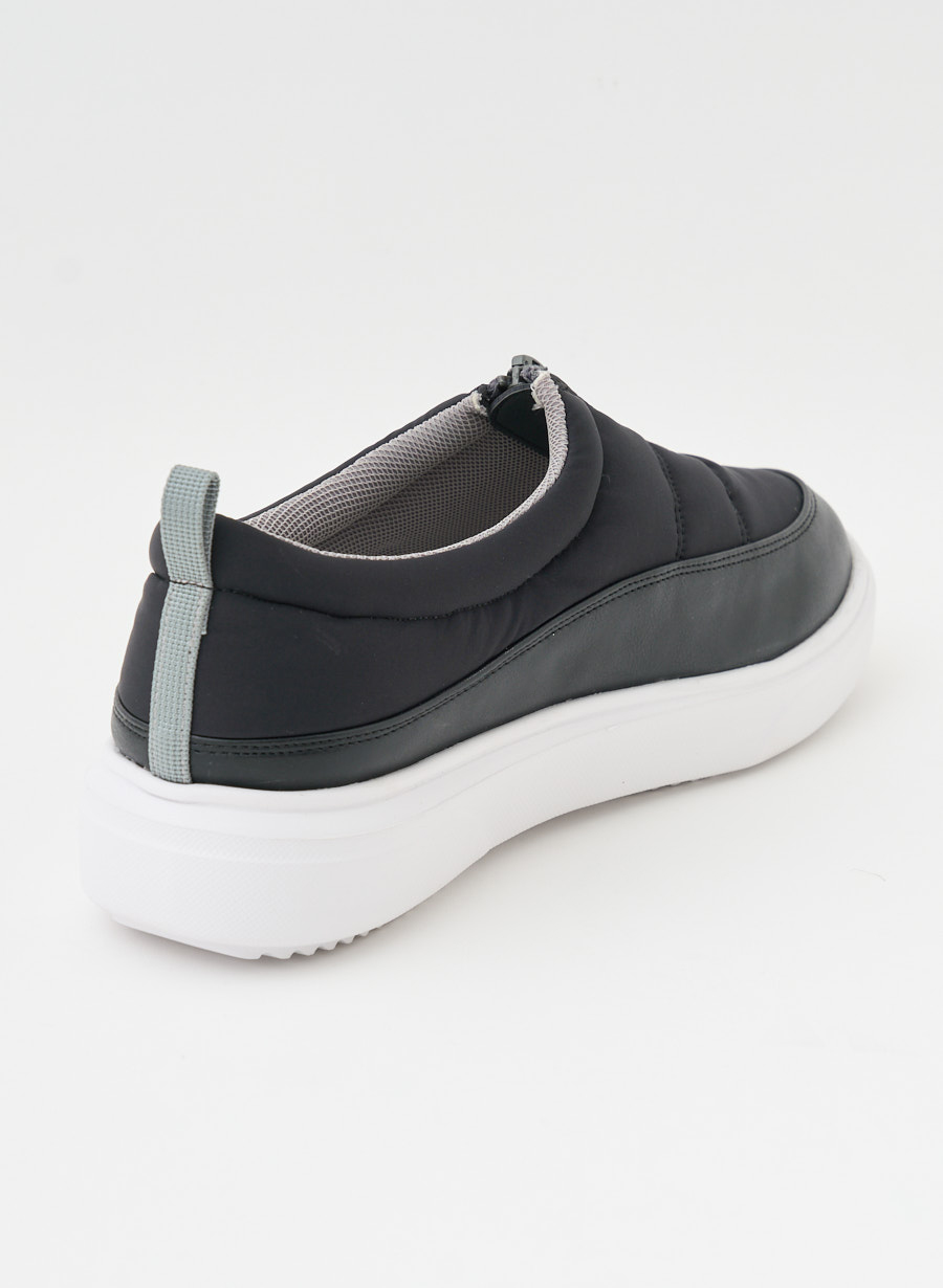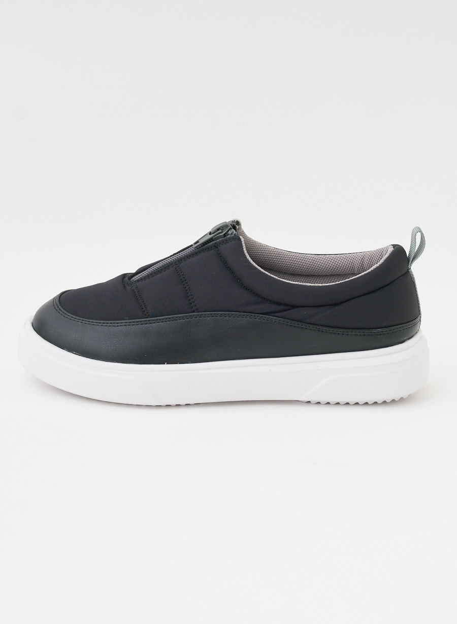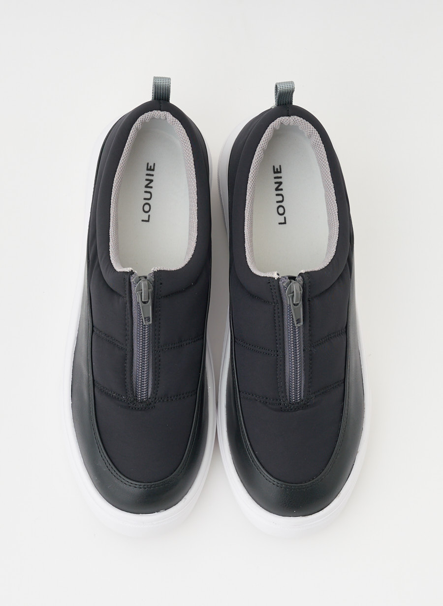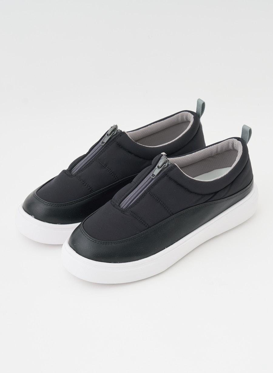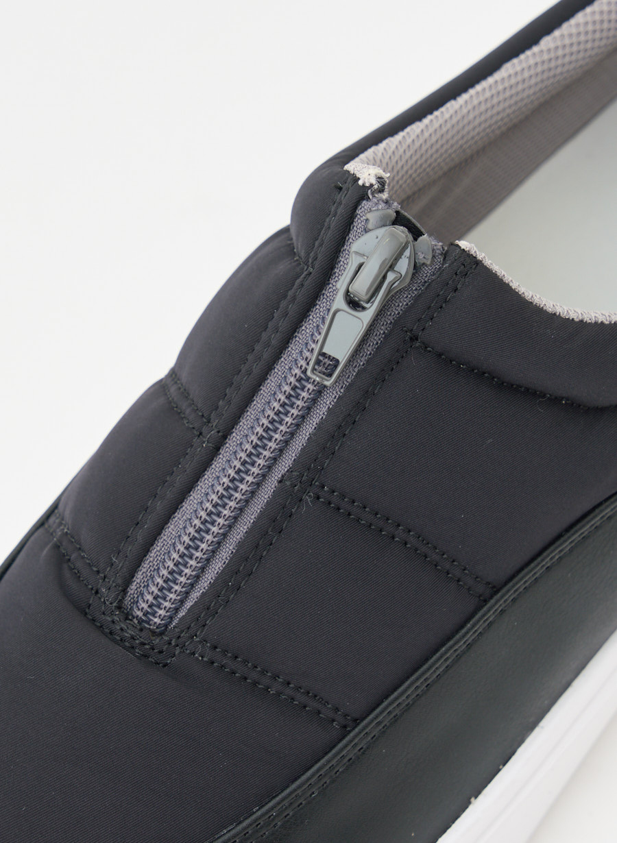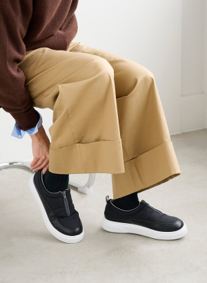センターファスナーとかかとのヒールチップを配色にしてラインデザイン風に仕上げることにより、すっきりとしたスポーティな印象に。