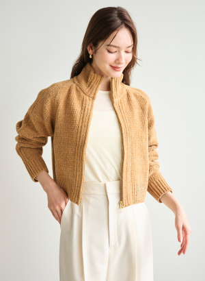 糸の持つ滑らかな風合いと伸縮性に優れた着心地の良い素材感が特徴。